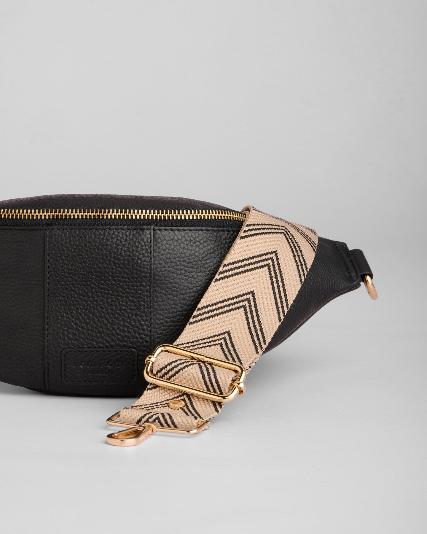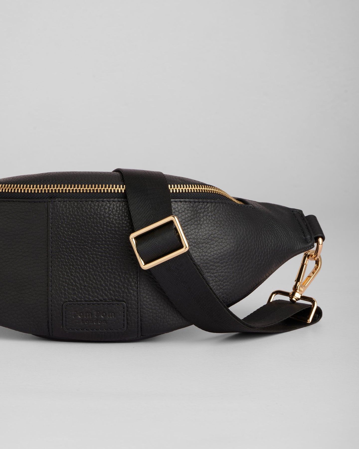 - Pom Pom London Gürteltasche in Schwarz – Eine stilvolle und praktische Tasche zum Freihändigmachen, perfekt für den Alltag.