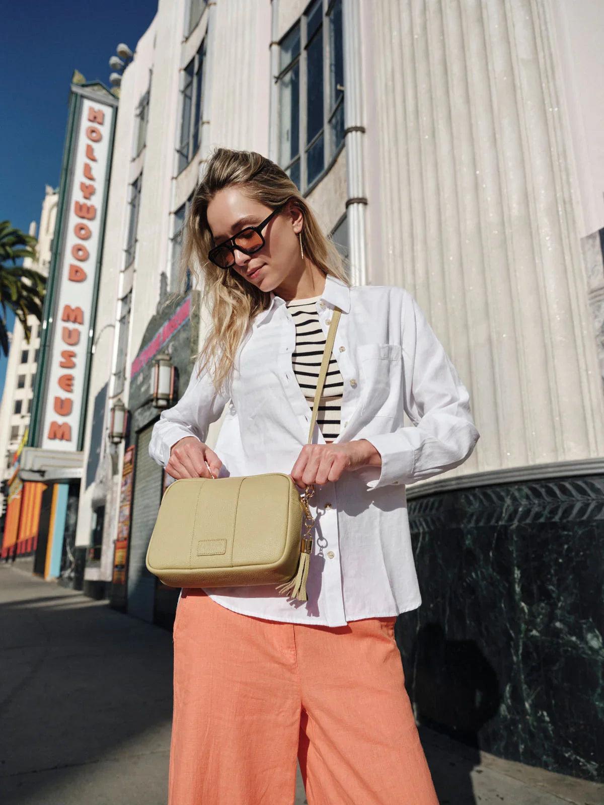 - Pom Pom London City Bag in Pale Fern - A stylish crossbody bag in a vibrant new season shade.