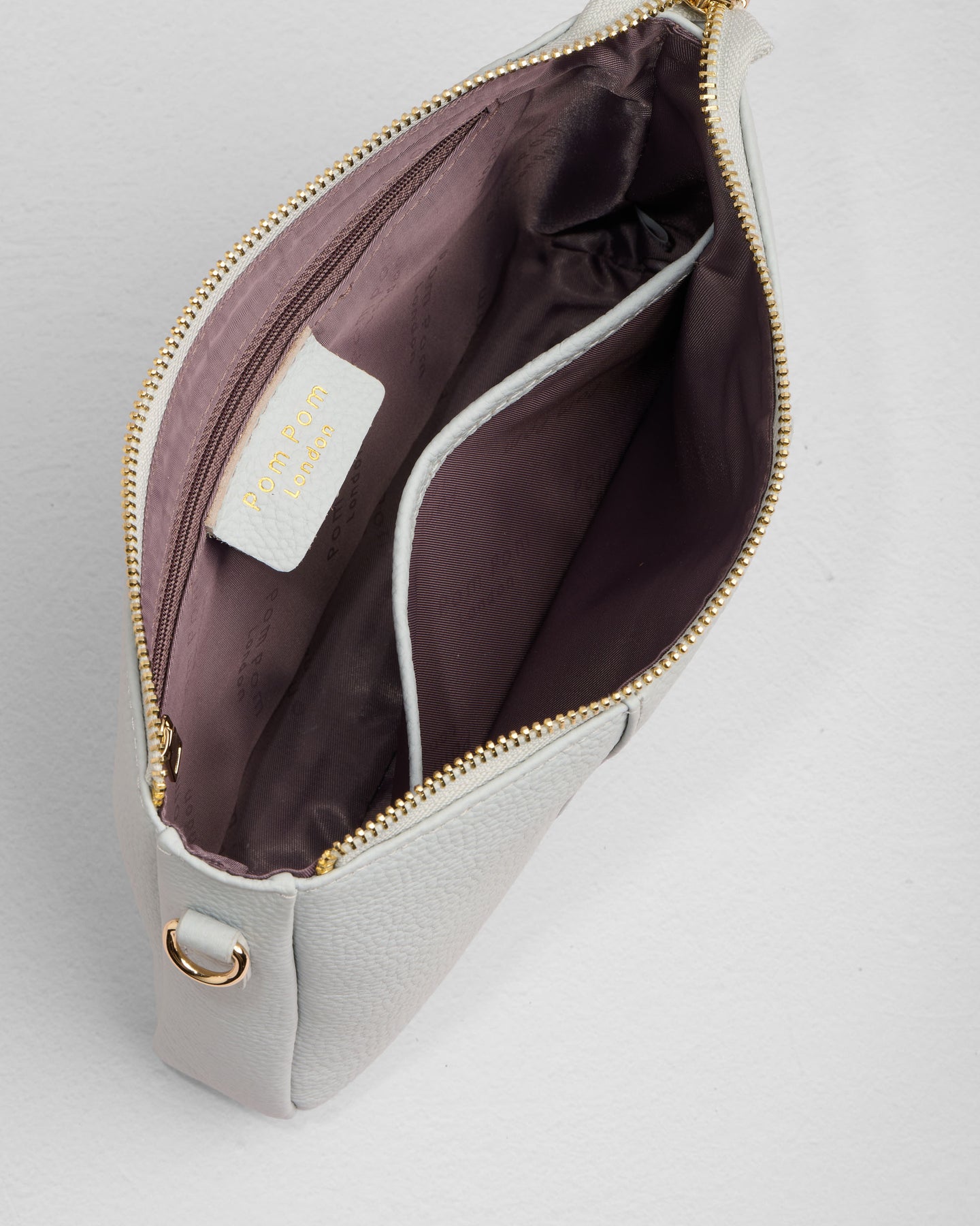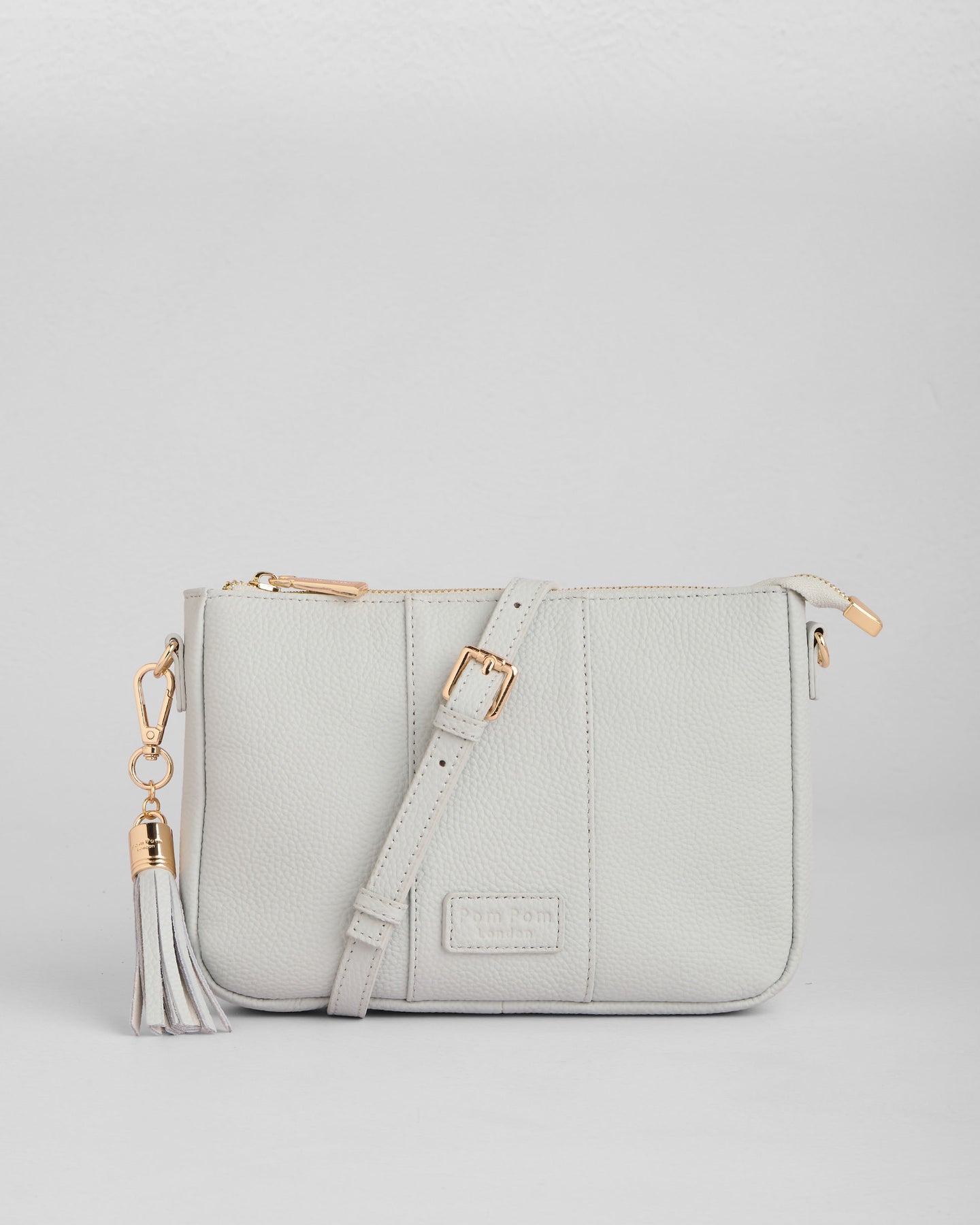 - Pom Pom London City Slim Bag in Salt Grey - A stylish crossbody bag in a vibrant new season shade.
