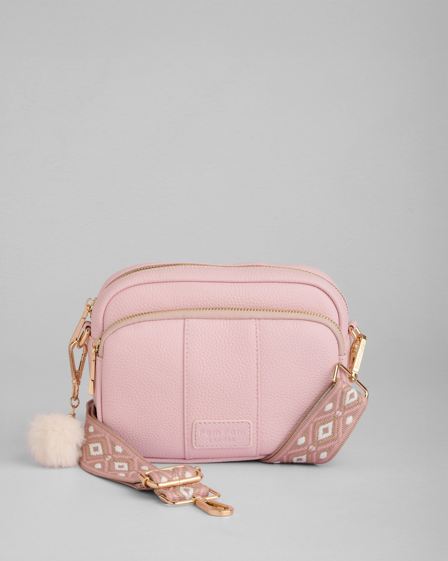 • Pom Pom London Original Bag in Cherry Blossom Pink - A stylish crossbody bag in a vibrant new season shade.