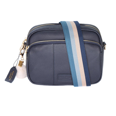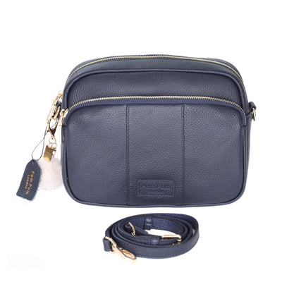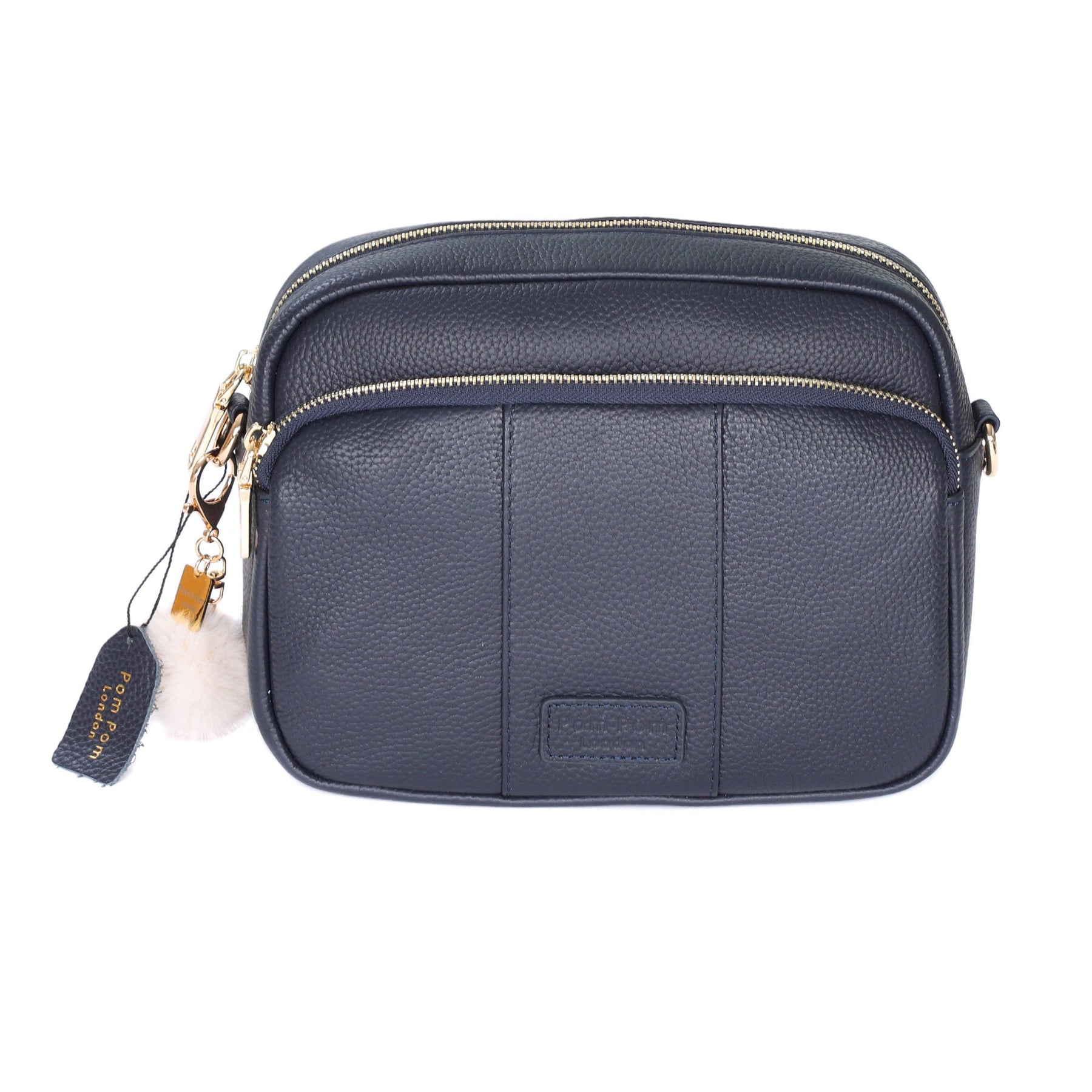 Pom Pom London Original Plus bag in Navy - A classic crossbody bag in a timeless core colour.