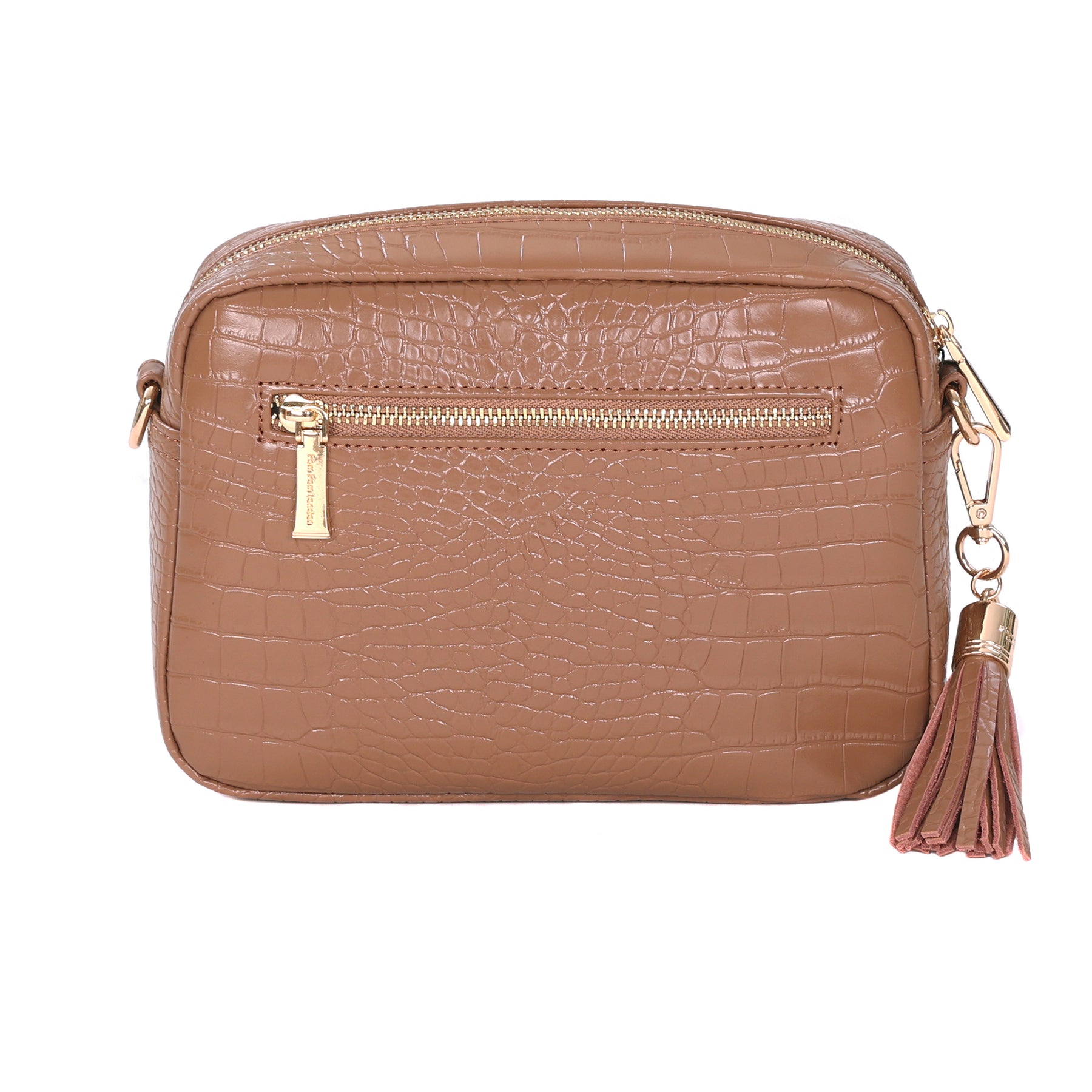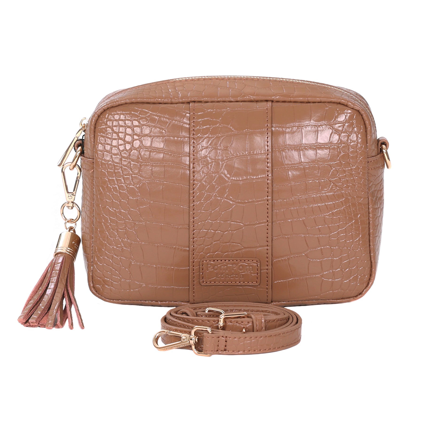 - Pom Pom London Original Bag Croc in Caramel - A premium crossbody in textured croc-embossed leather.