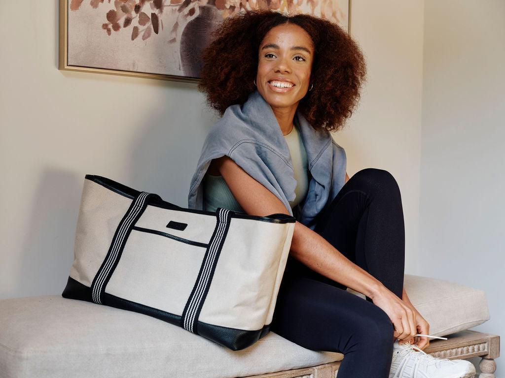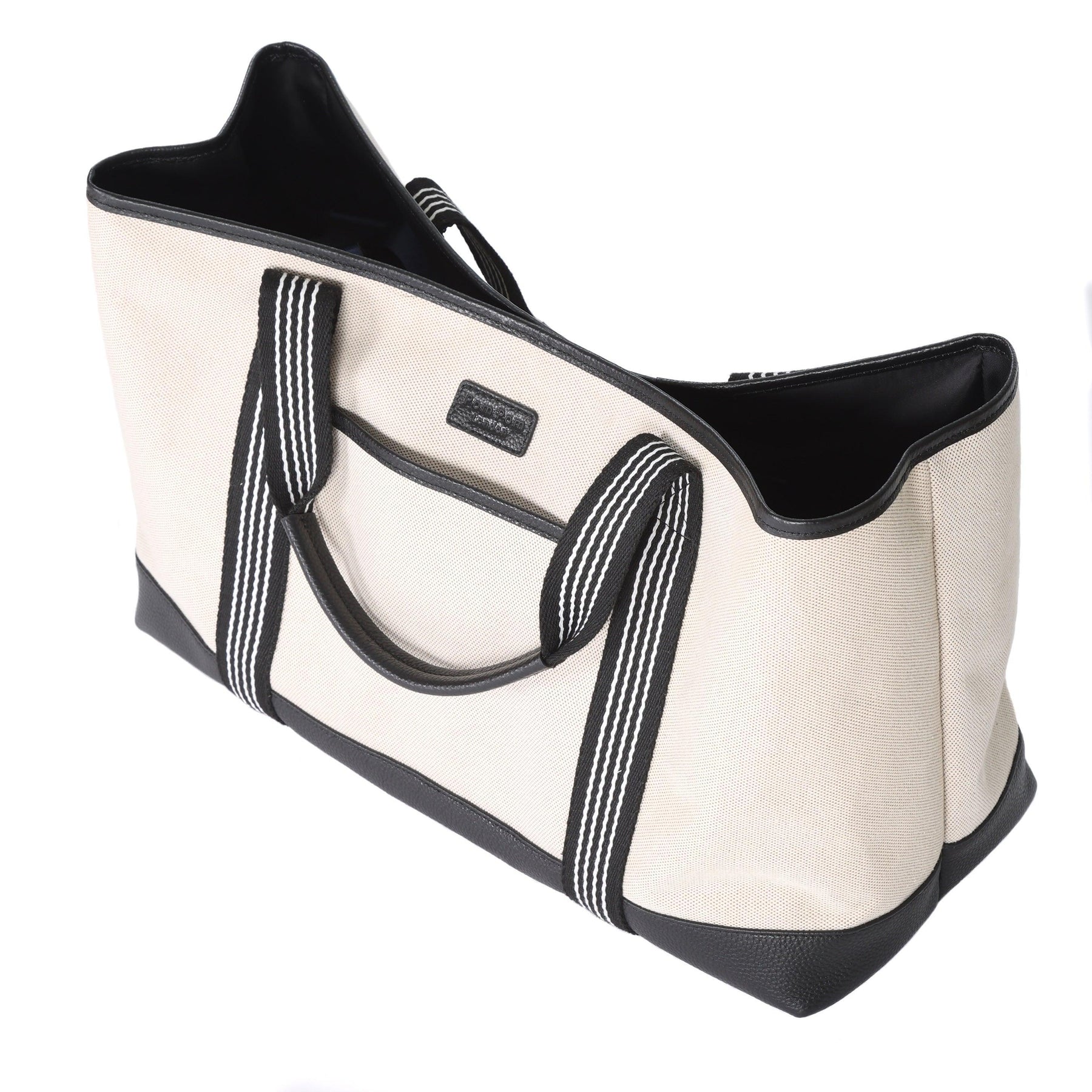Introducing the Padstow Tote Bag Black. Our Padstow Tote bags are the perfect all-rounder bags—ideal for the beach, carrying around town, or as your hand luggage for a flight. Made from a wipe-down canvas material and edged in leather, these tote bags are the perfect everyday accessory.