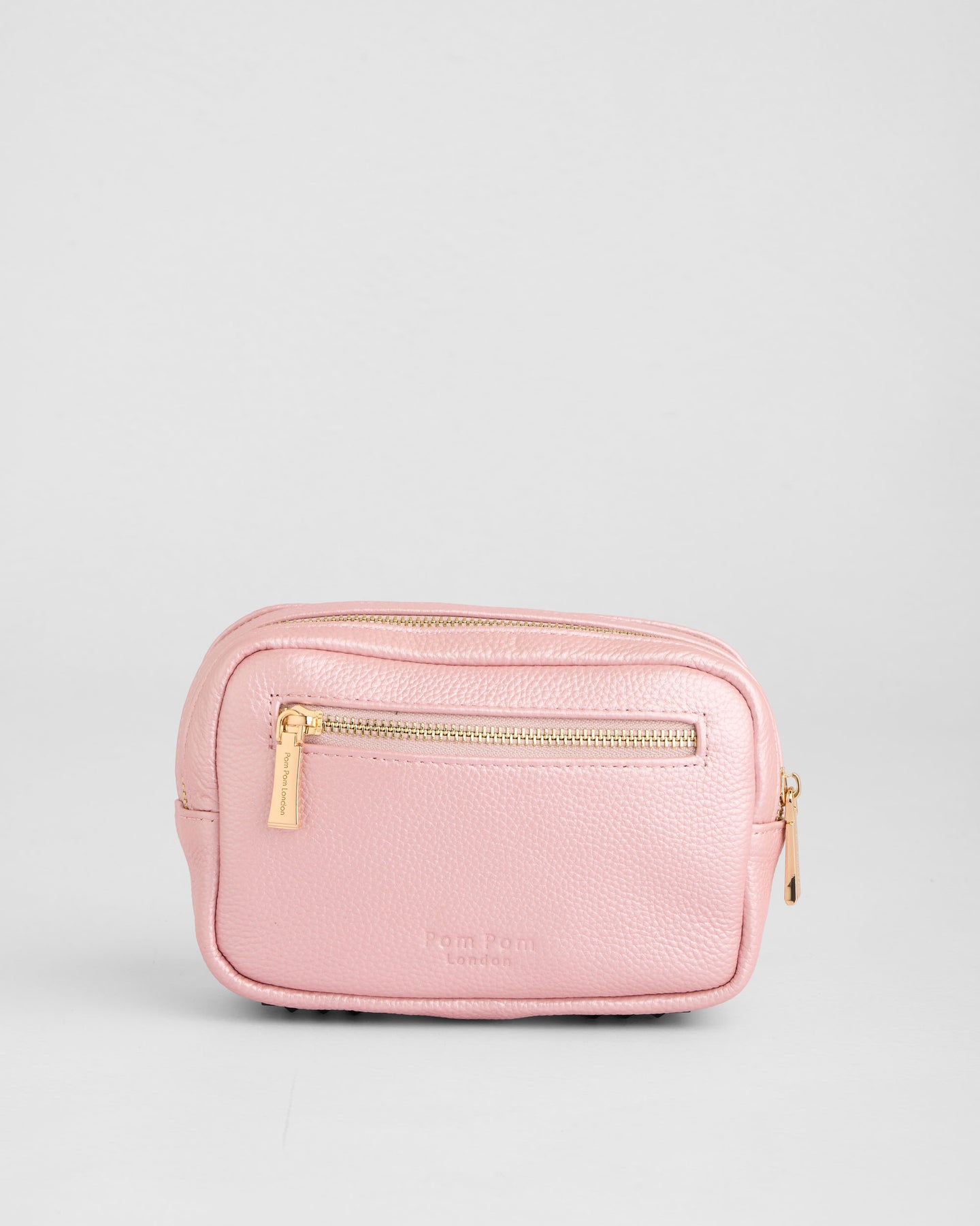 - Pom Pom London Small Wash Bag in Metallic Pale Pink