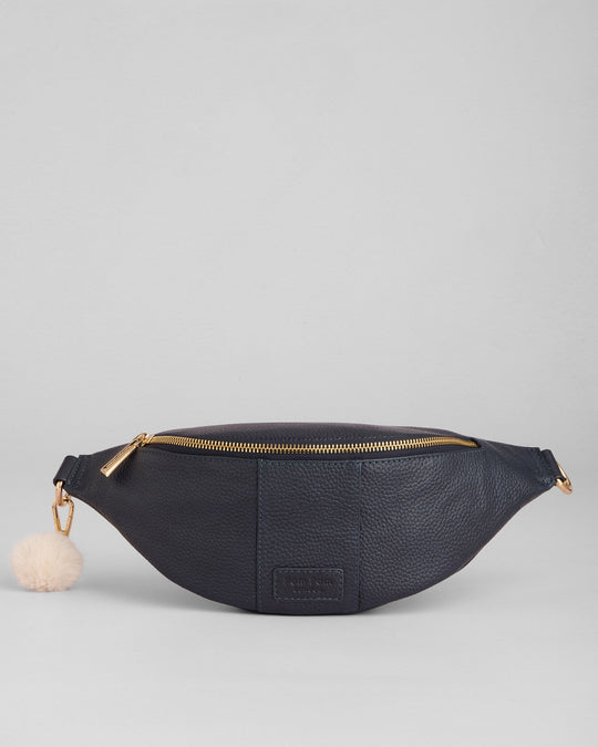 • Pom Pom London Bum Bag in Navy - A stylish and practical hands-free bag, perfect for everyday wear.