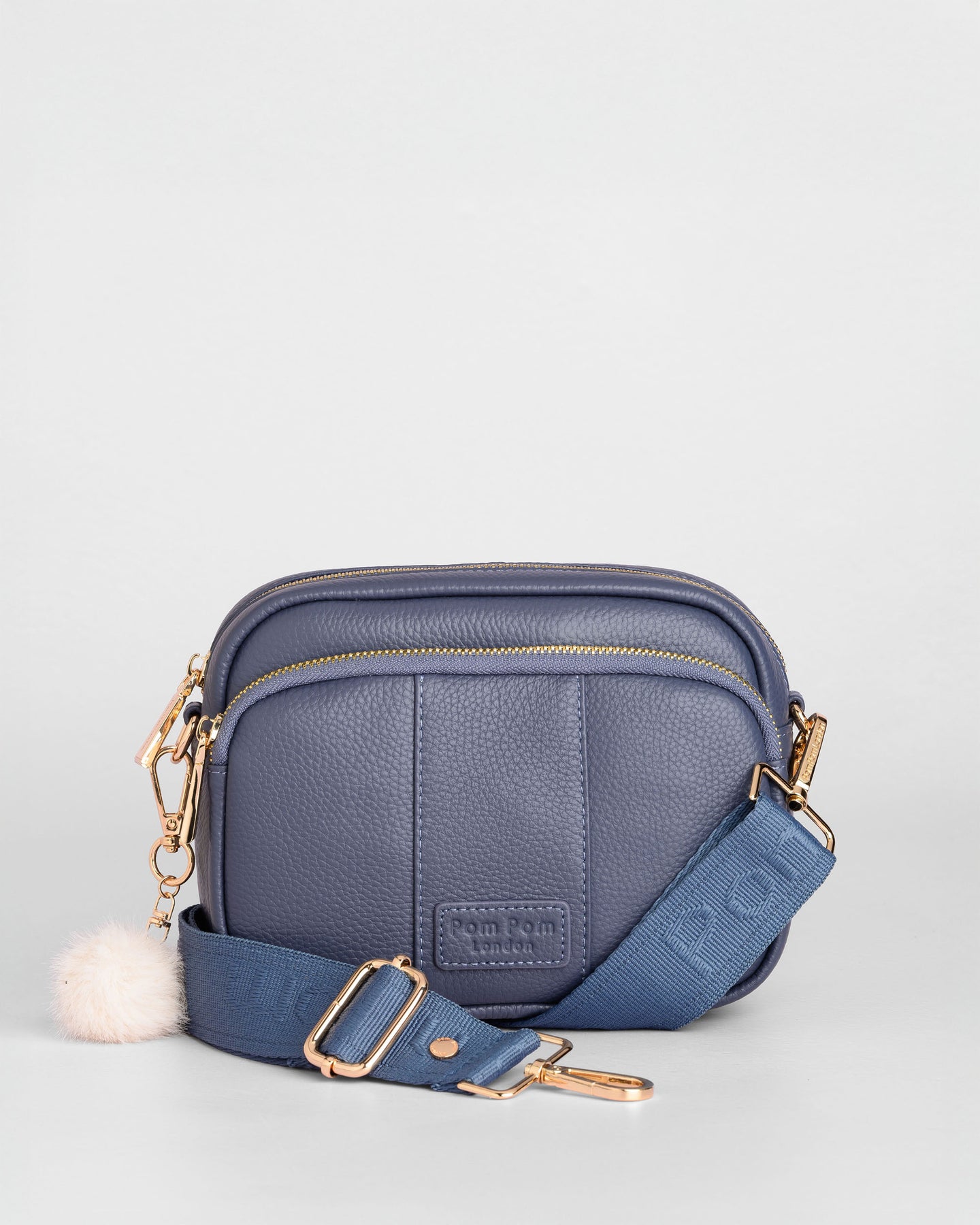 • Pom Pom London Original Bag in Slate Blue - A classic crossbody bag in a timeless core colour.