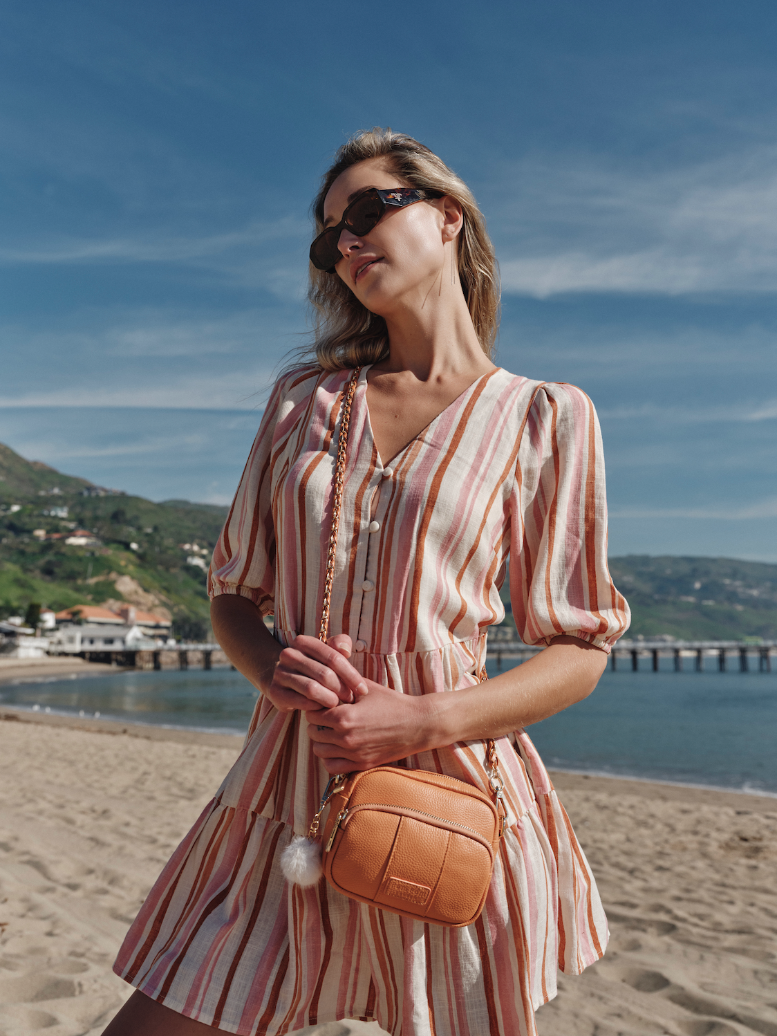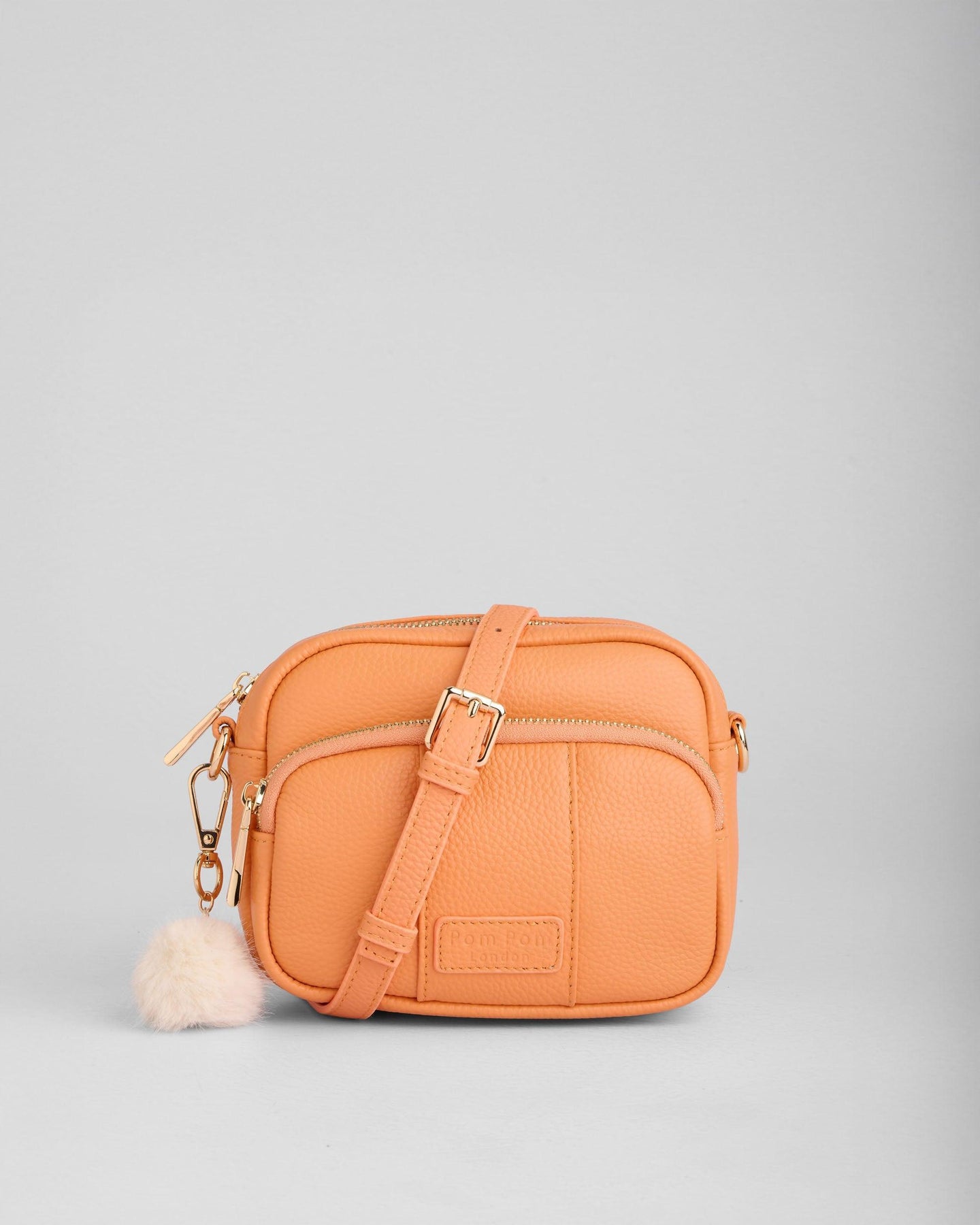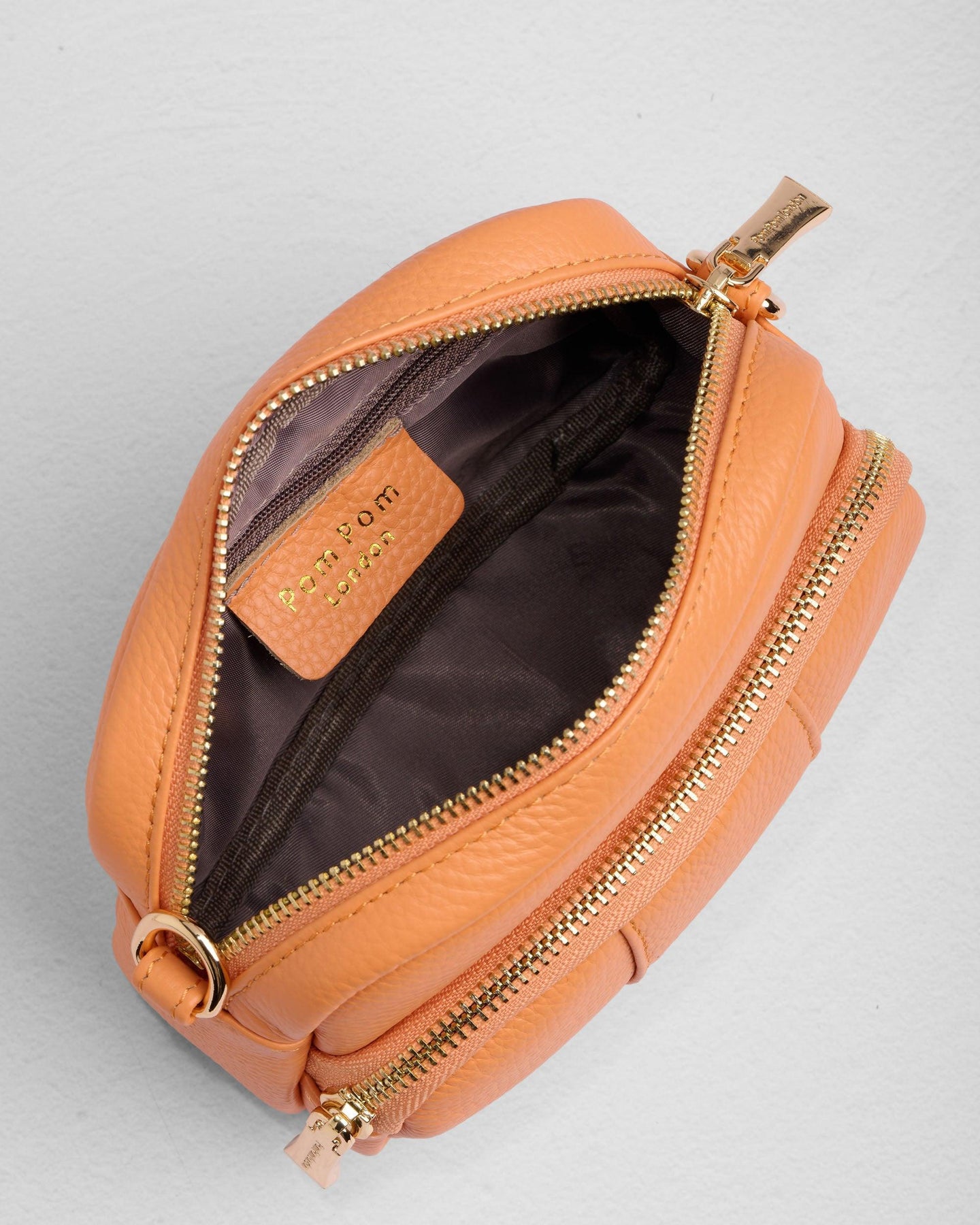 - Pom Pom London Original Mini Bag in Mango Tango - A stylish crossbody bag in a vibrant new season shade.