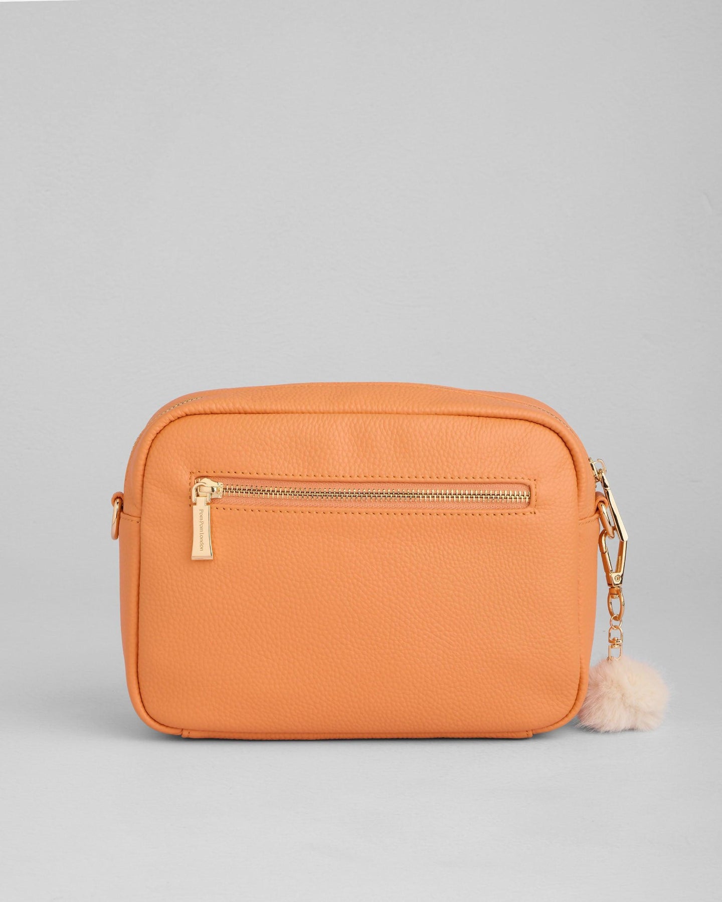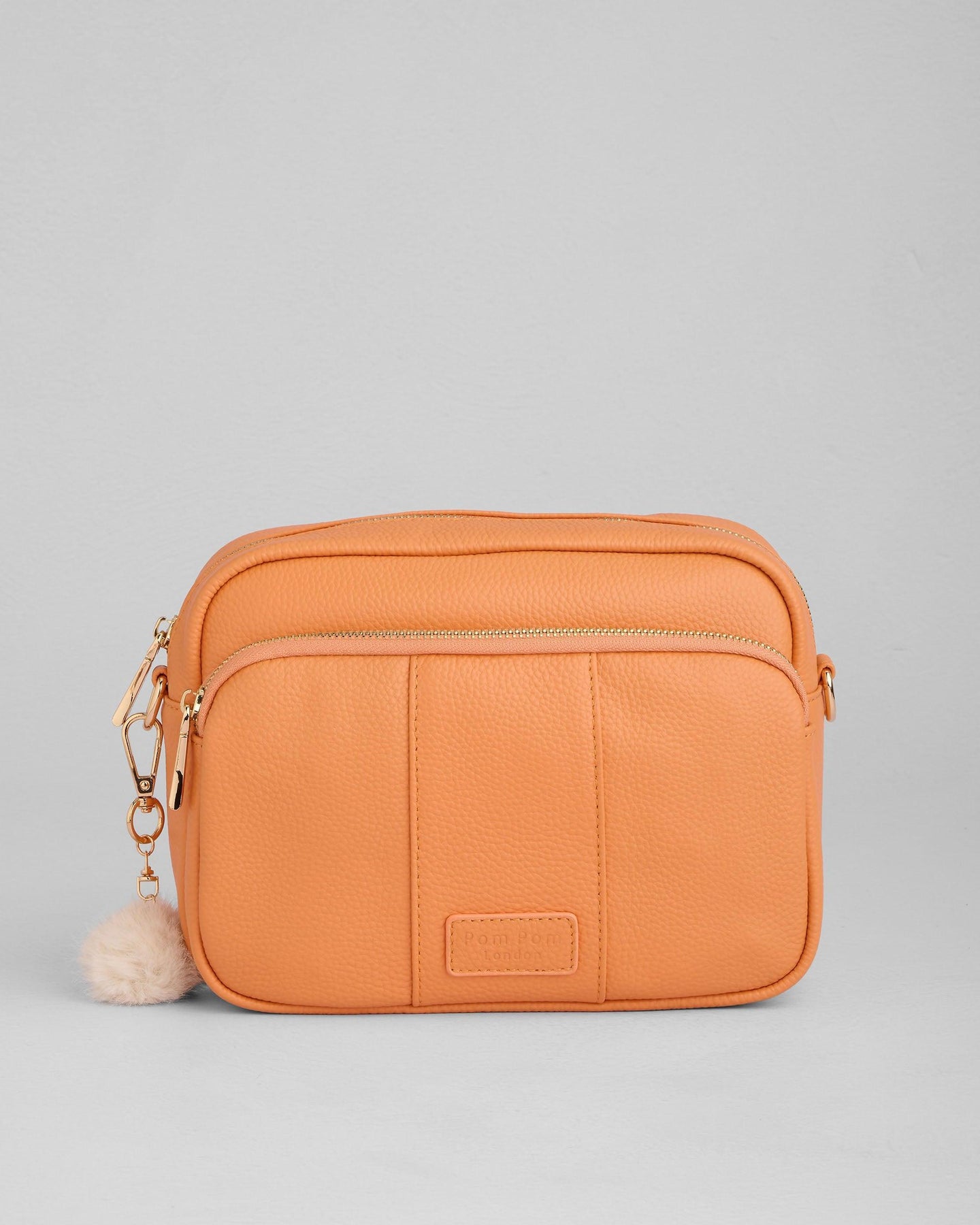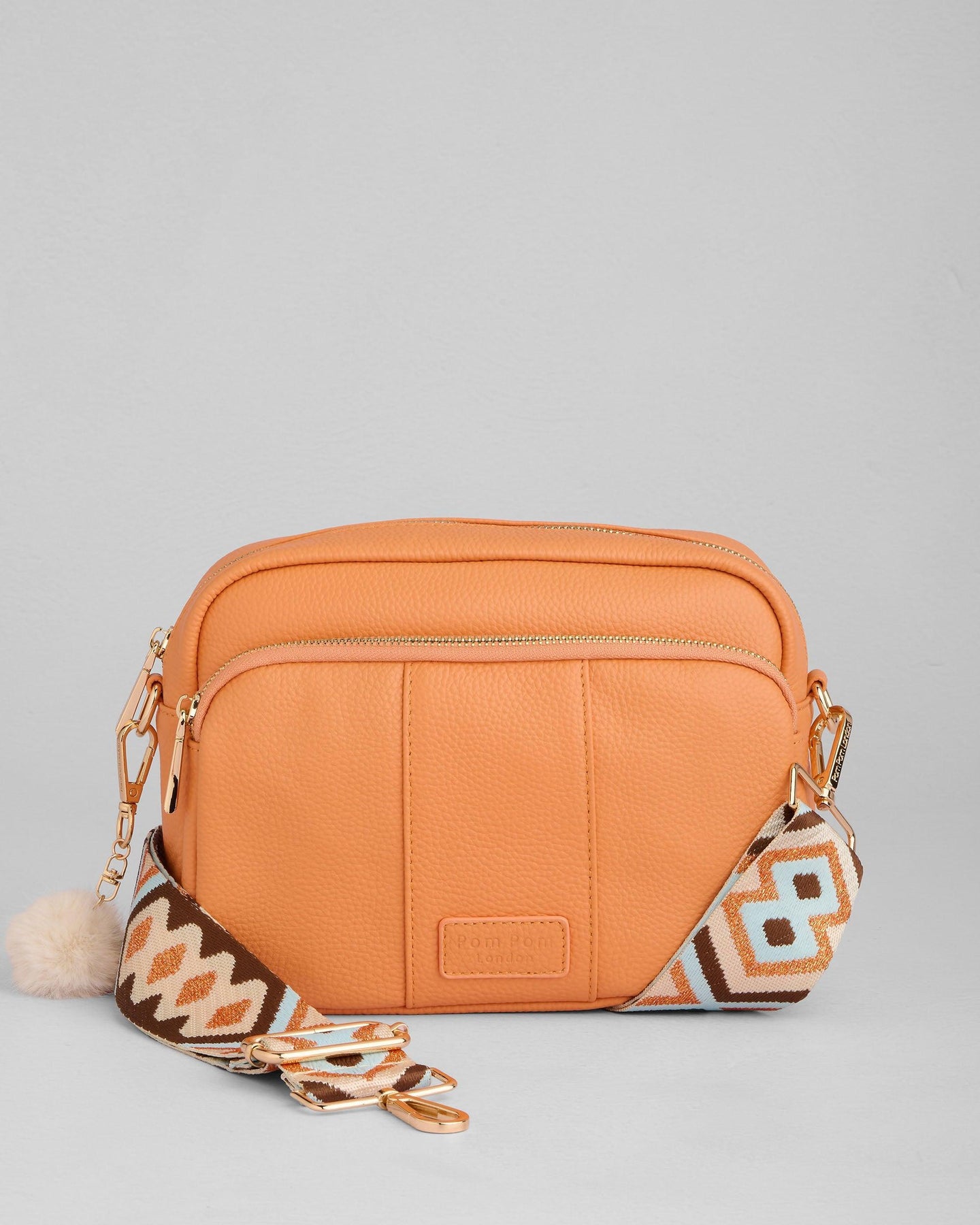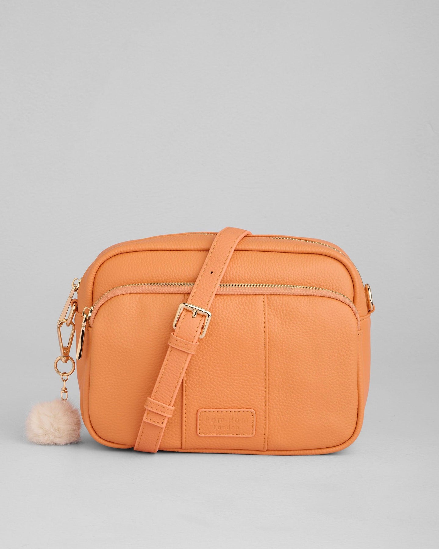 • Pom Pom London Original Plus Bag in Mango Tango - A stylish crossbody bag in a vibrant new season shade.