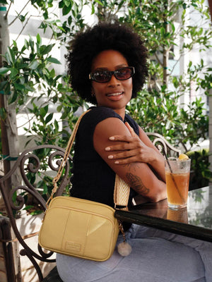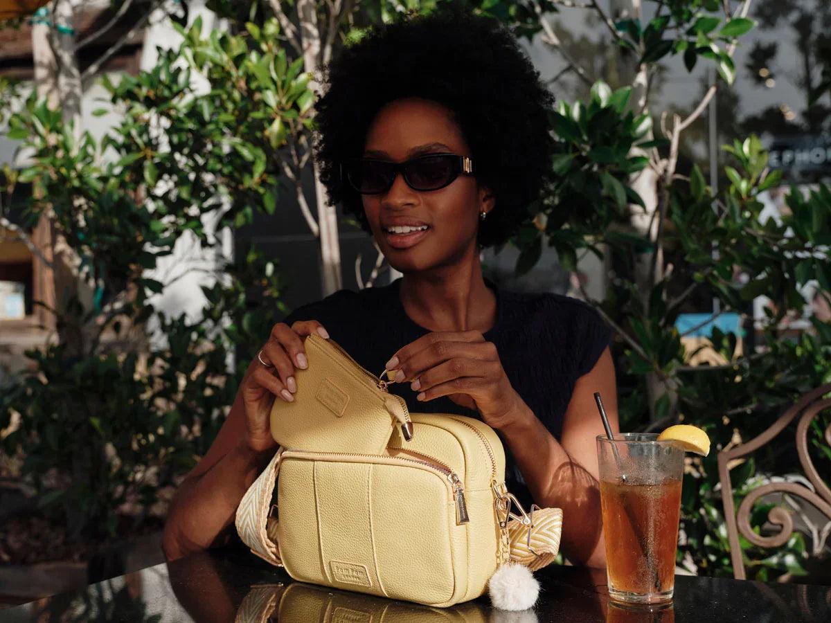 - Pom Pom London Original Plus Bag in Straw - A stylish crossbody bag in a vibrant new season shade.