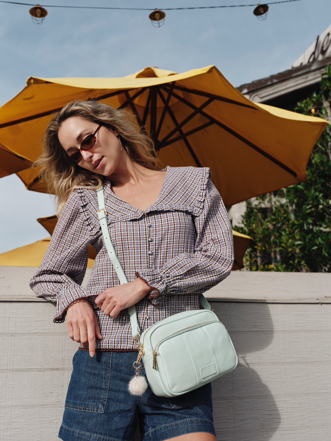 - Pom Pom London Original Plus Bag in Spearmint - A stylish crossbody bag in a vibrant new season shade.