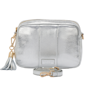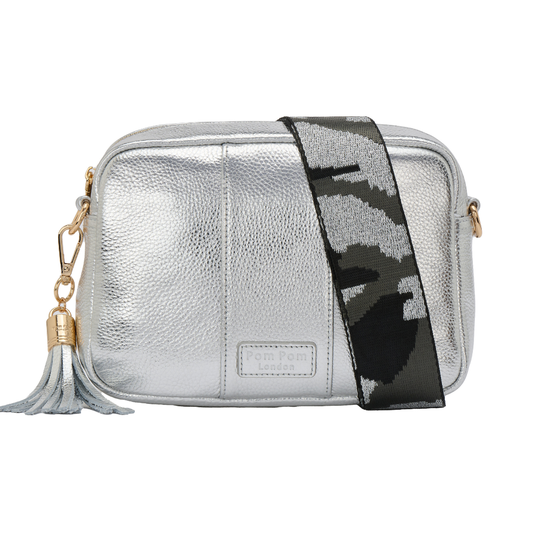 - Pom Pom London City Bag in Metallic Silver - A statement crossbody that shines from day to night.