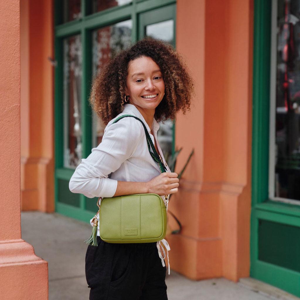 - Pom Pom London City Bag in Wasabi Green - A stylish crossbody bag in a vibrant new season shade.