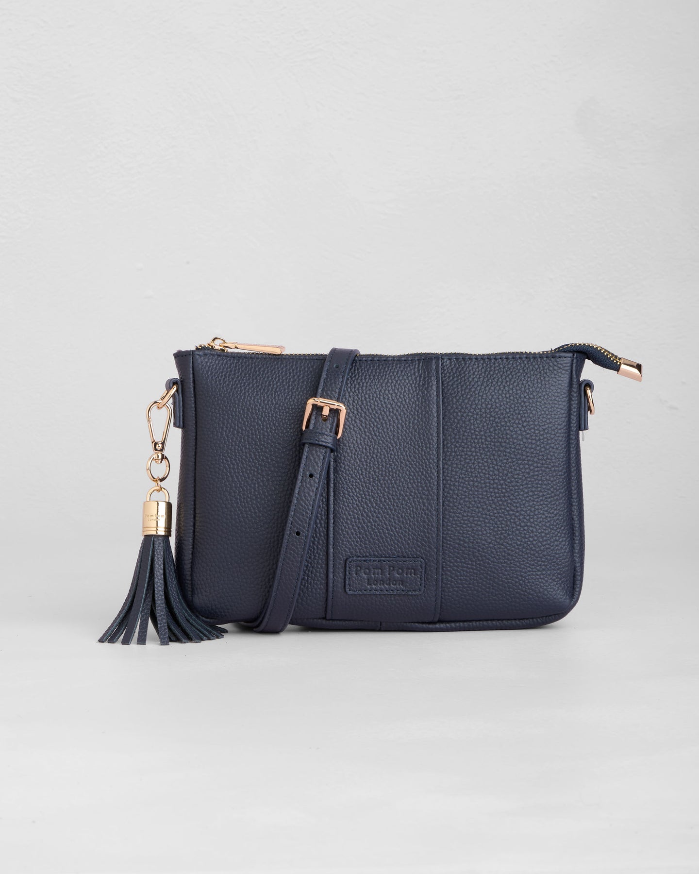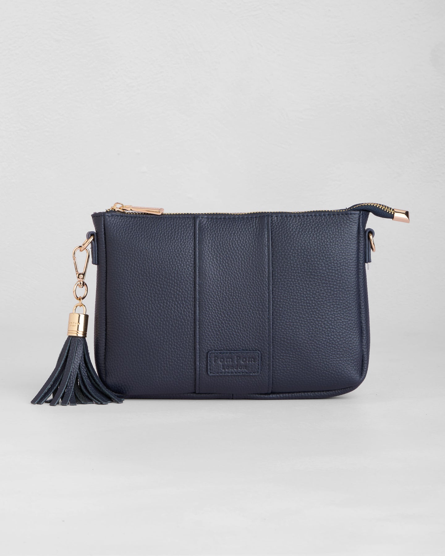 - Pom Pom London City Slim Bag in Navy - A classic crossbody bag in a timeless core colour.