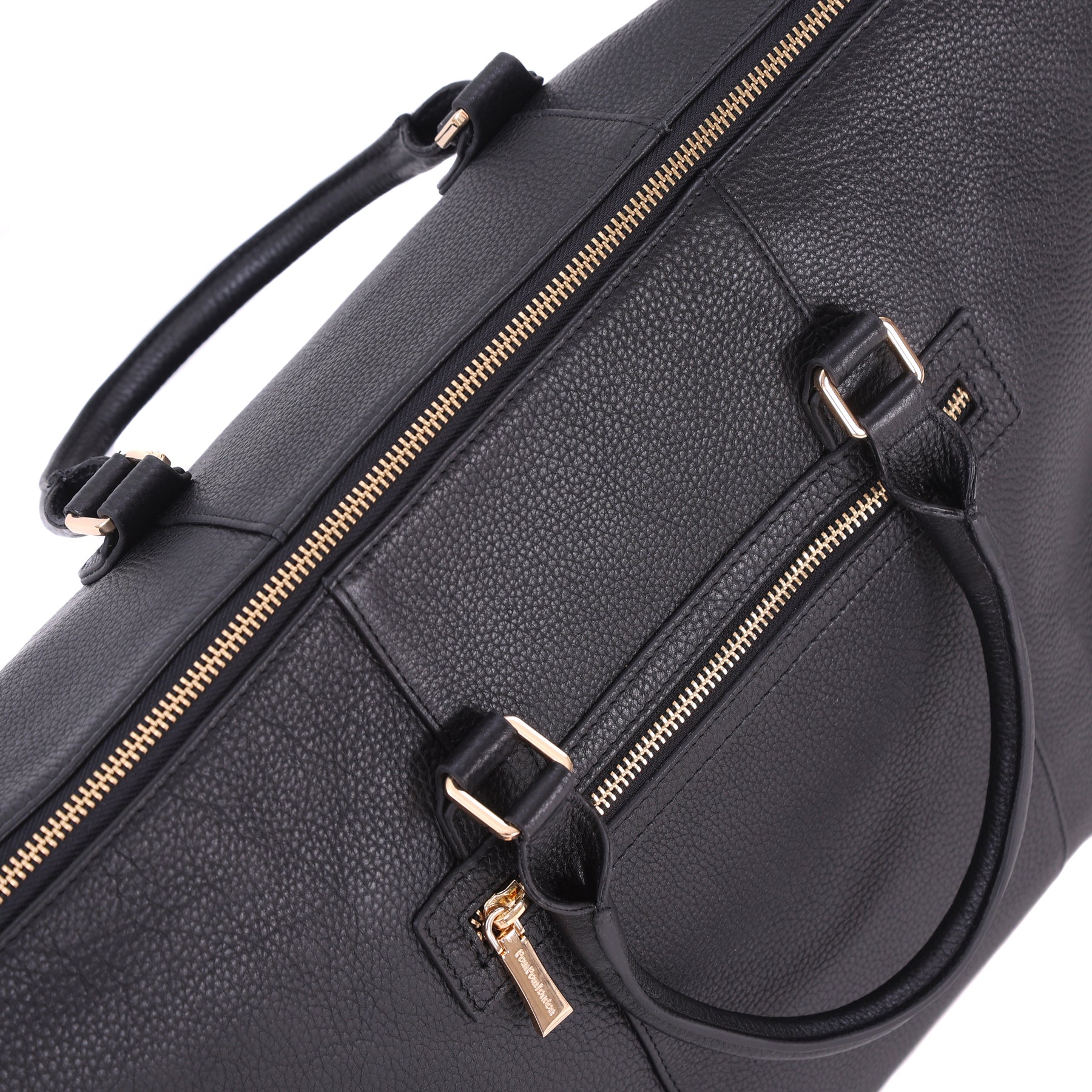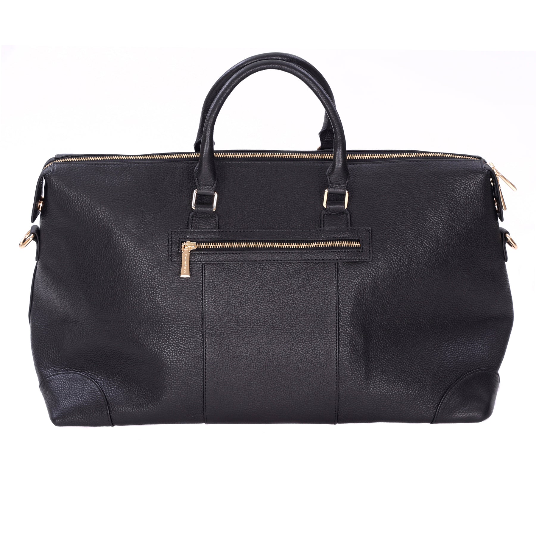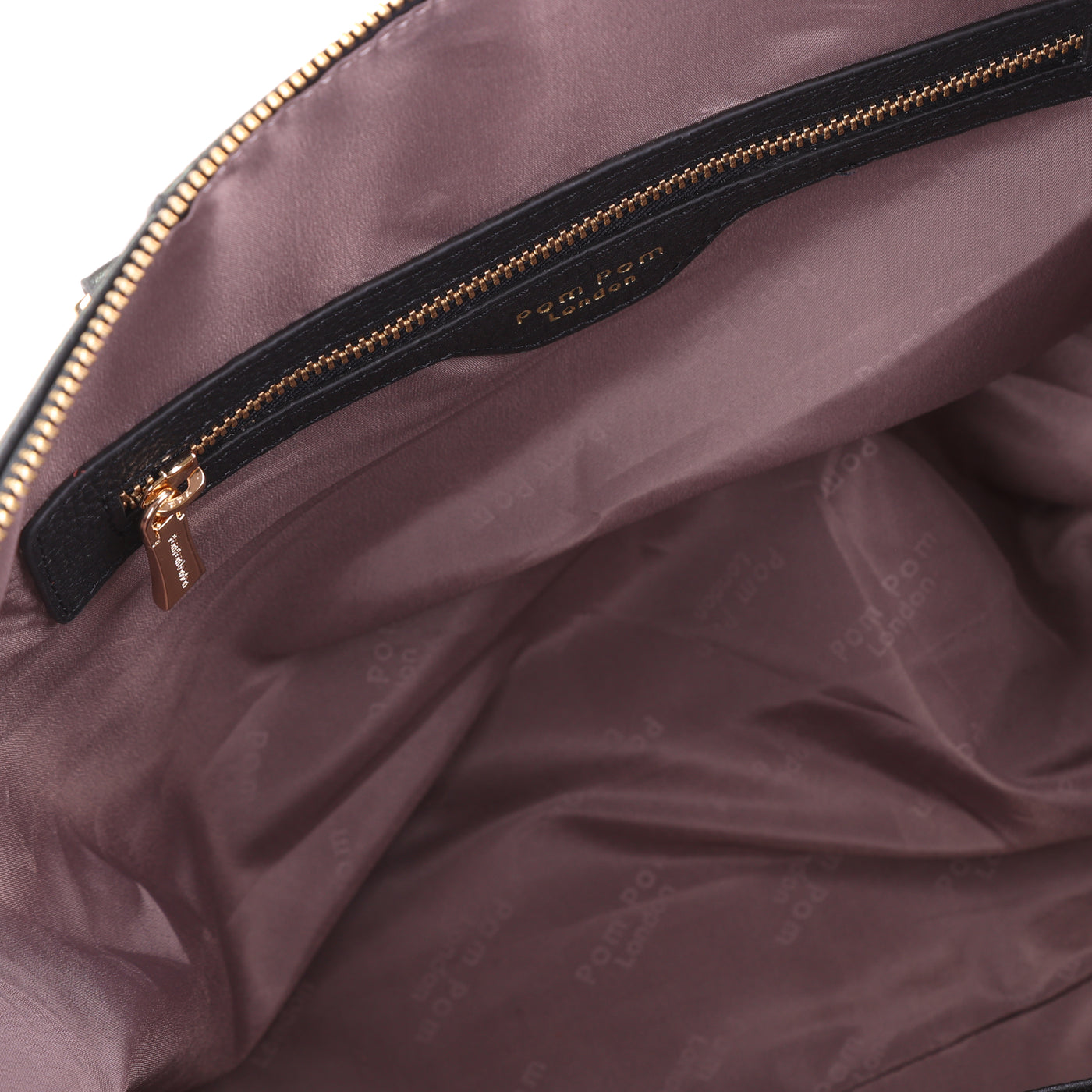 Introducing the Pom Pom London Weekend Bag in Black. Made from lined pebble grain leather, it features soft top roll handles and a detachable fabric crossbody strap. This is the ultimate leather weekend bag for a trip to the gym, a night away, or a weekend visit.