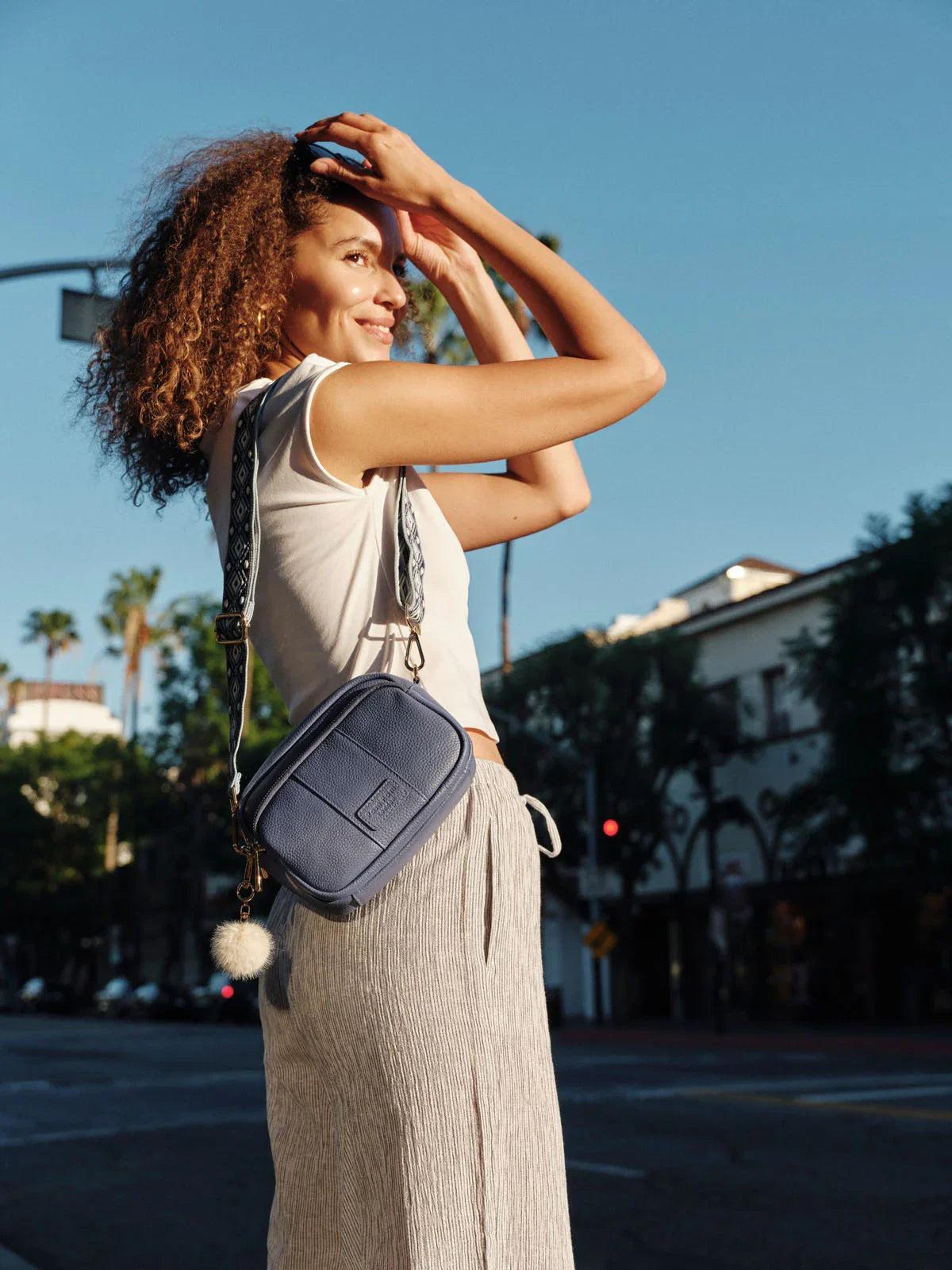 • Pom Pom London Original Bag in Lupin Blue - A stylish crossbody bag in a vibrant new season shade.