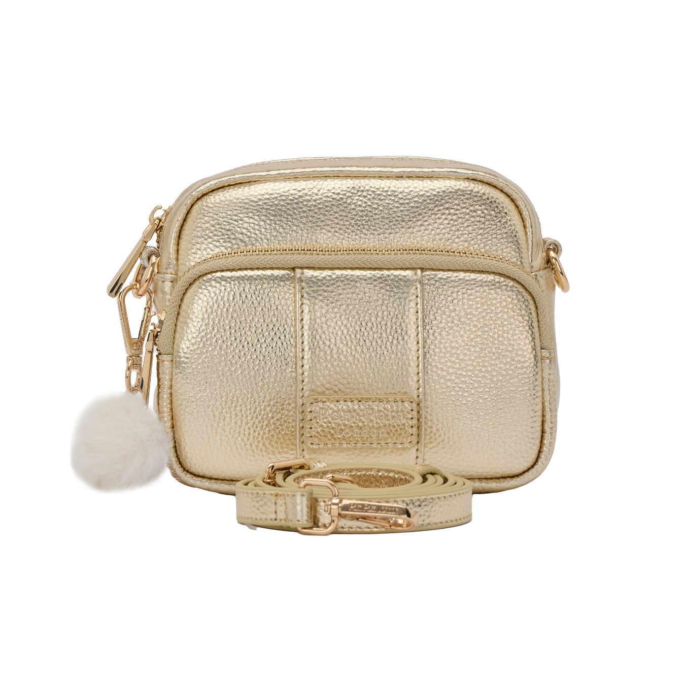 - Pom Pom London Original Mini Bag in Metallic Gold - A small crossbody that shines from day to night.