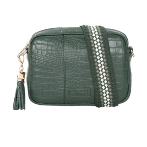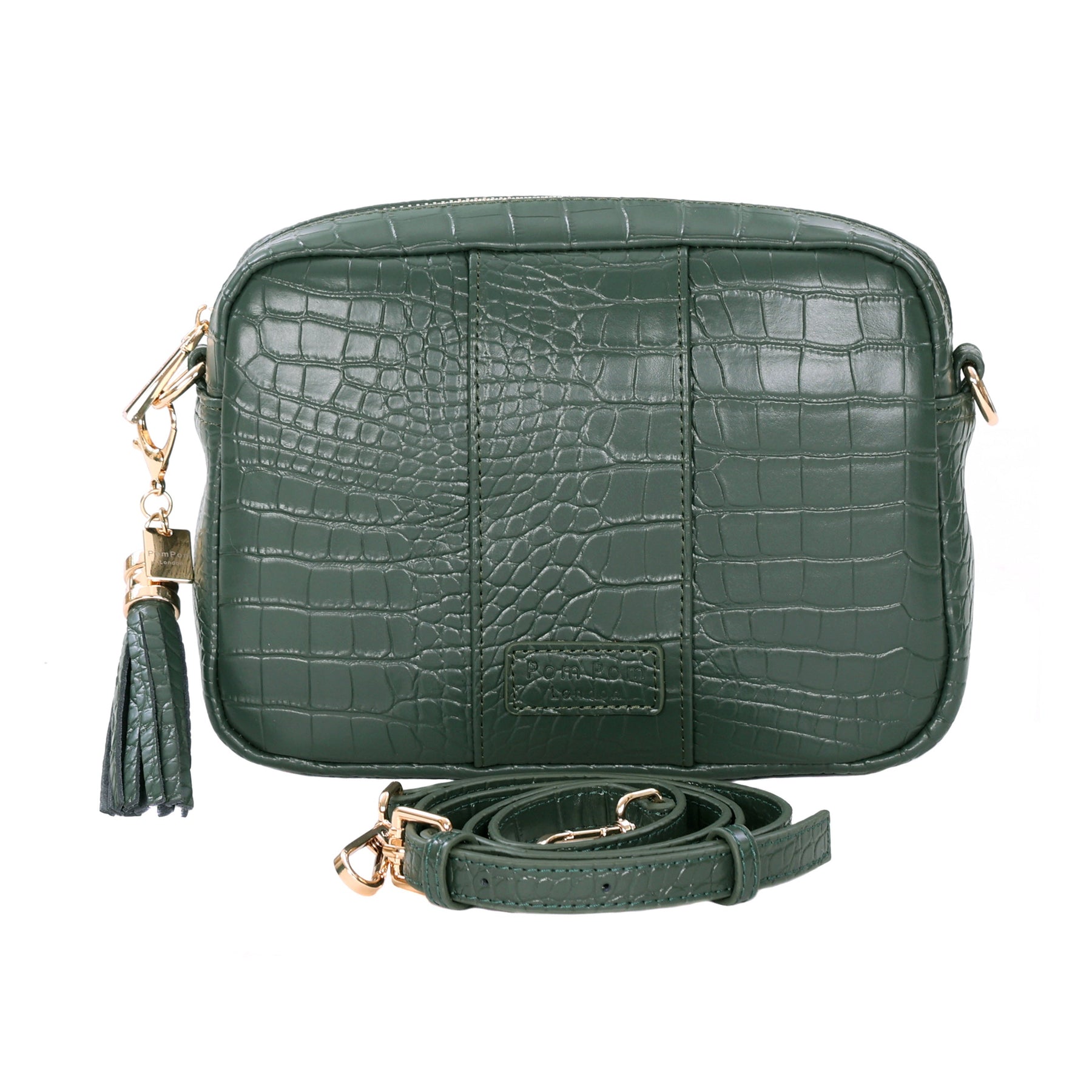 - Pom Pom London Original Bag Croc in Pine Green - A premium crossbody in textured croc-embossed leather.