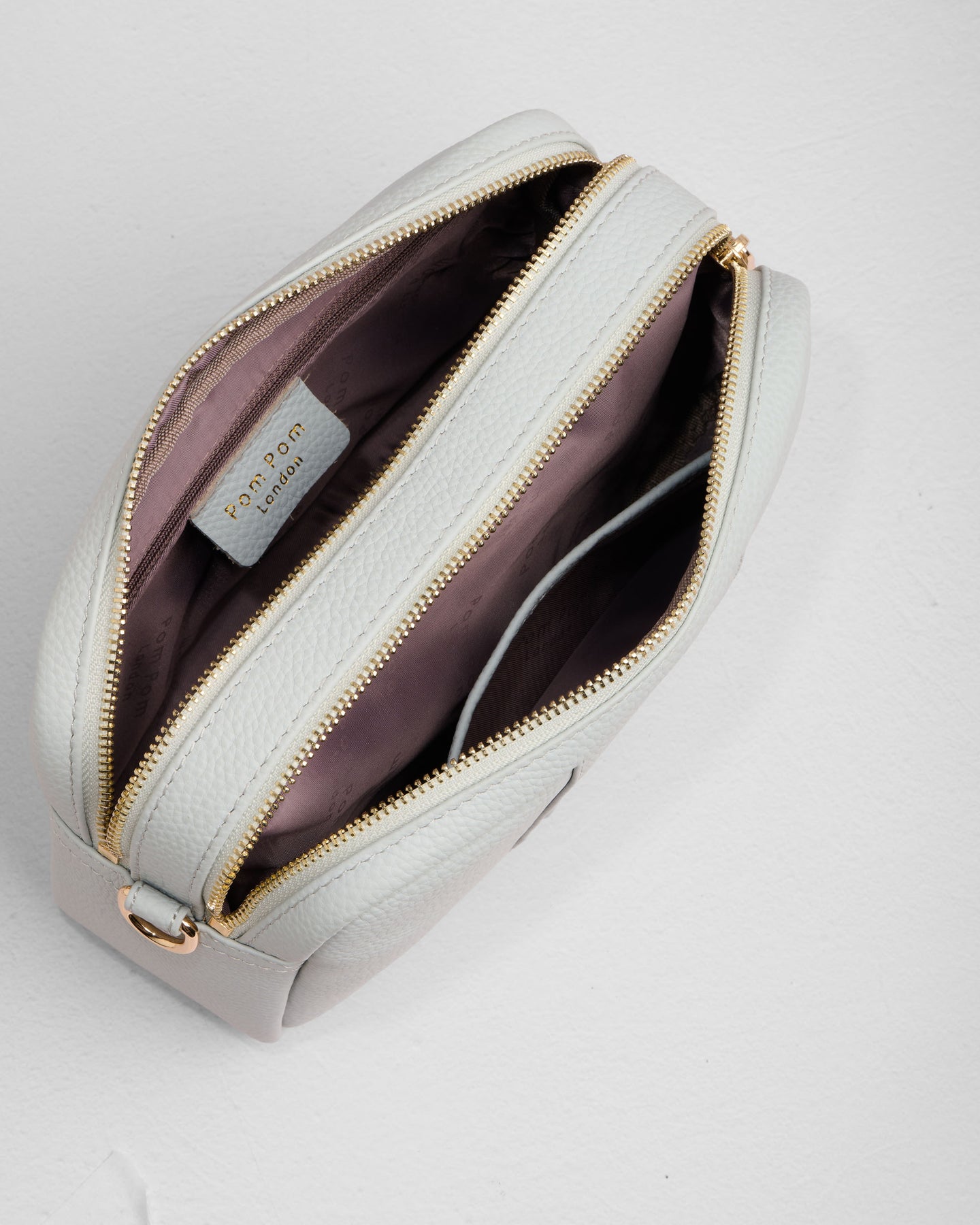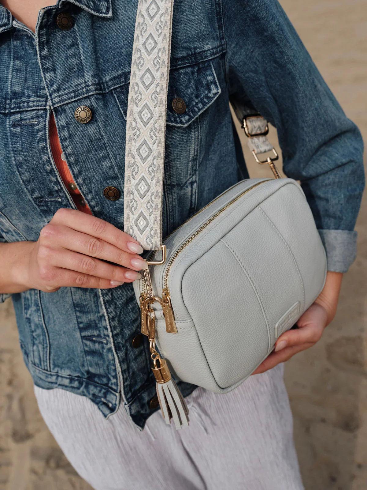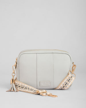 • Pom Pom London City Duo Bag in Salt Grey - A stylish crossbody bag in a vibrant new season shade.