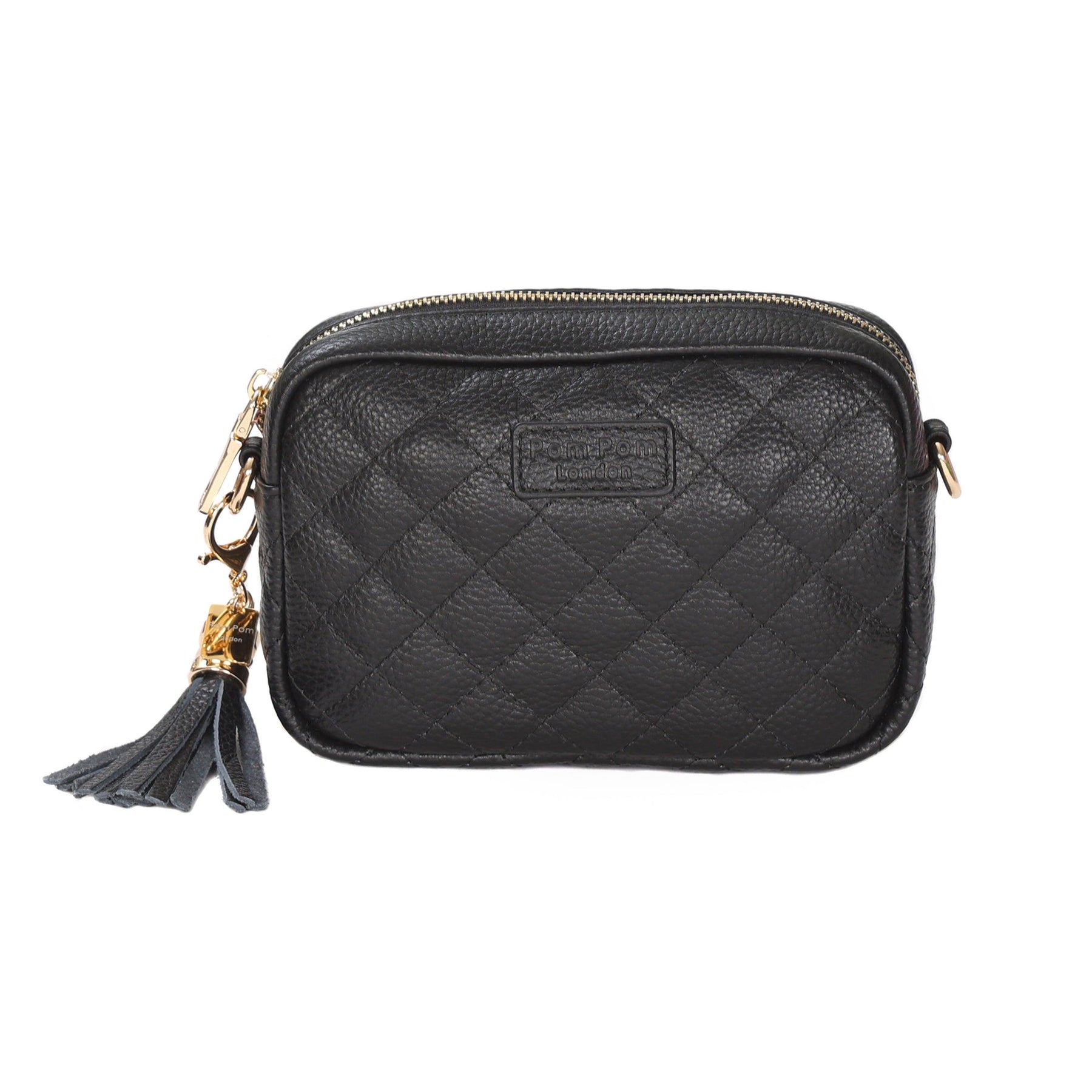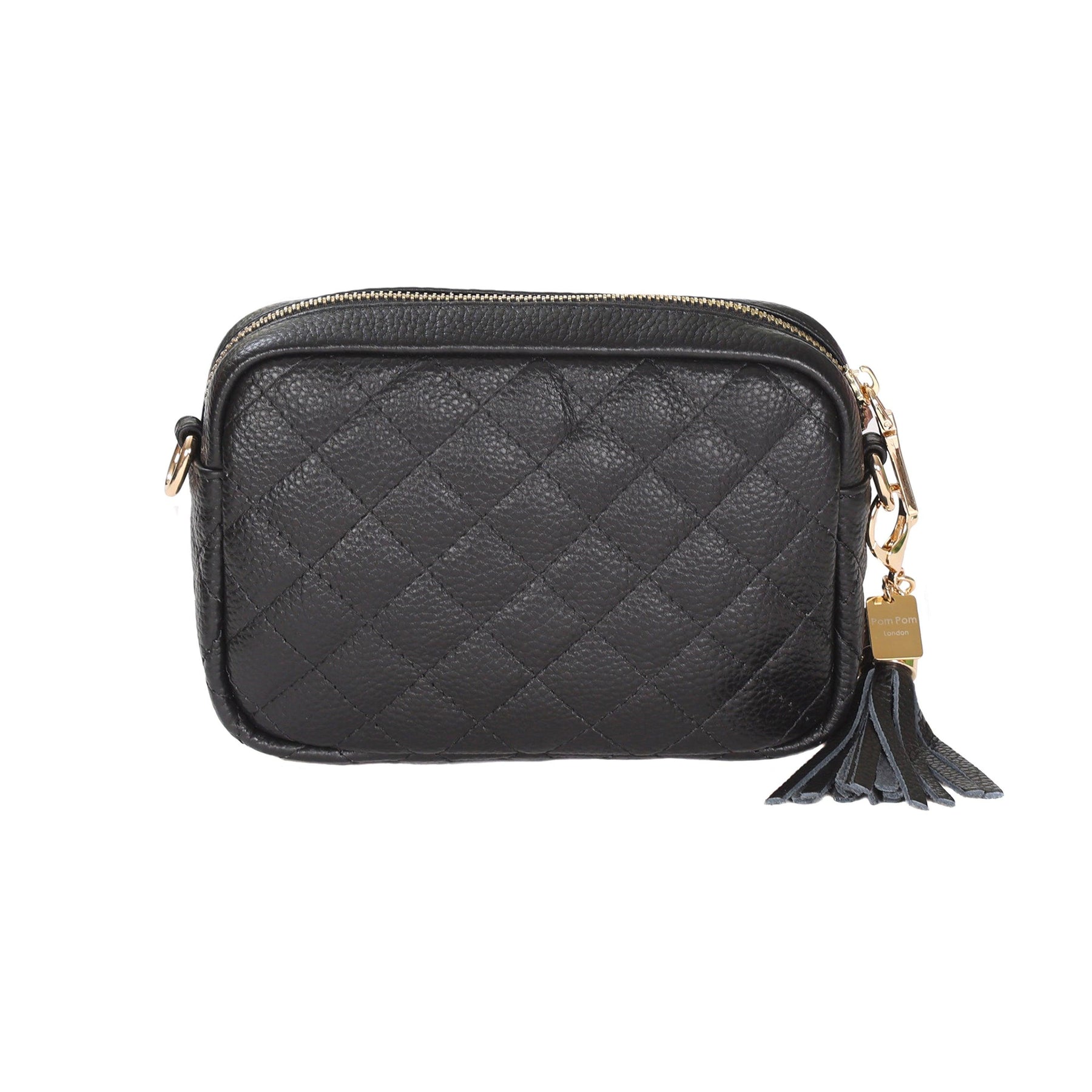 - Pom Pom London Quilted City Mini Bag in Black - A stylish crossbody crafted in quilted full grain leather.