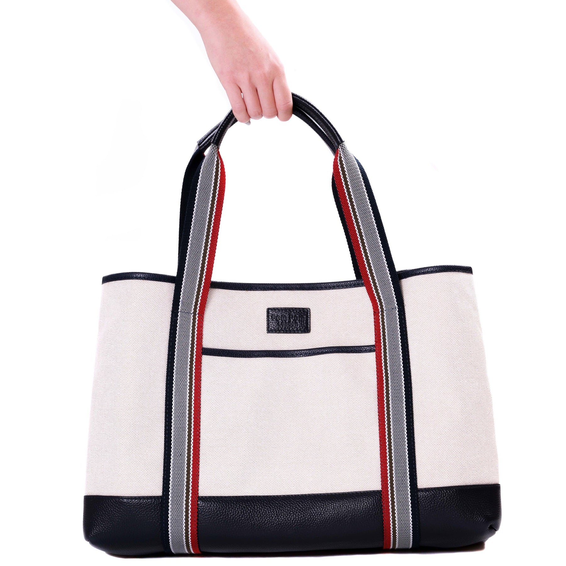 Introducing the Padstow Tote Bag Navy. Perfect for around town, going to the beach or as a carry on flight bag. Made in a wipe down canvas and edged in leather it is a perfect allrounder.