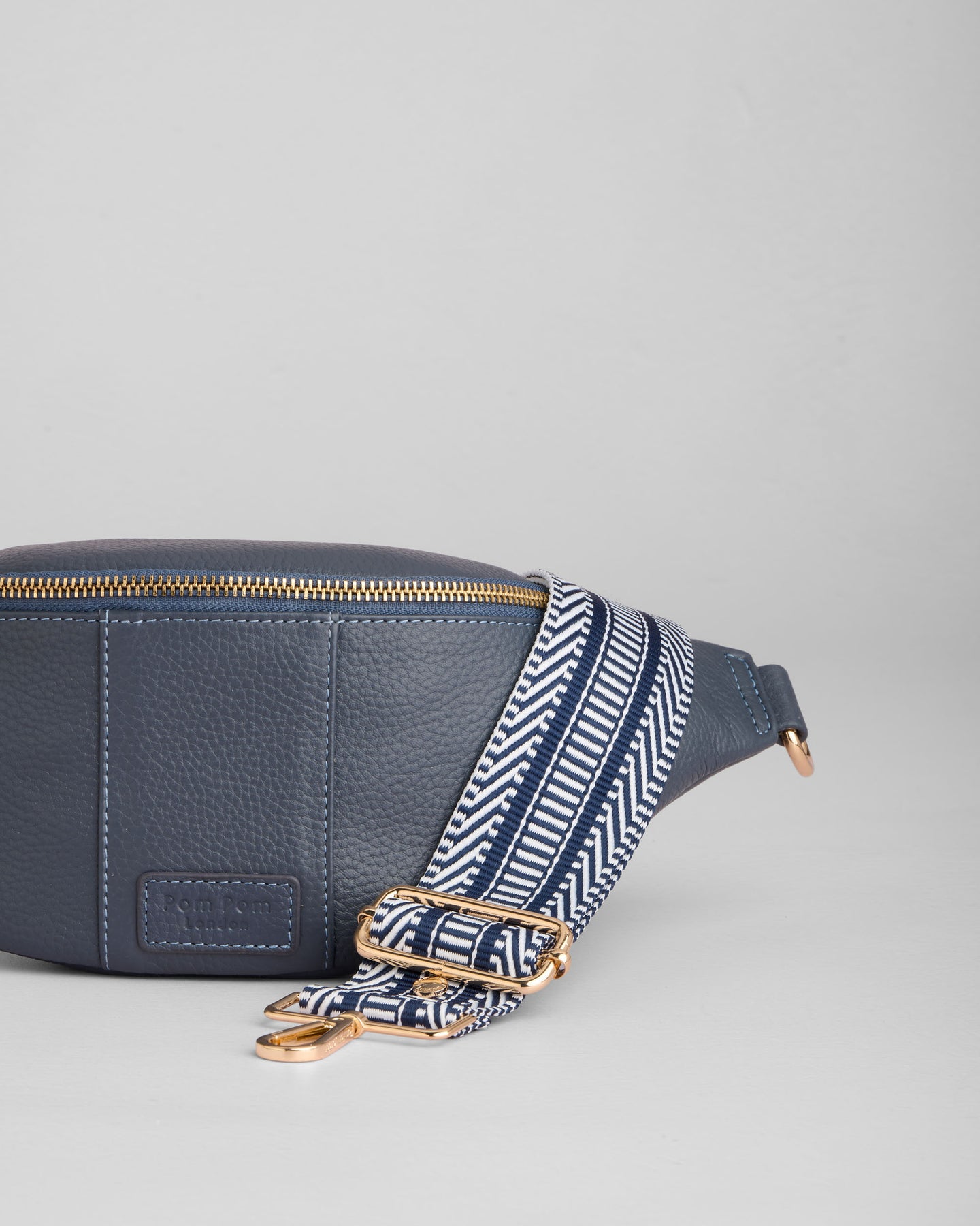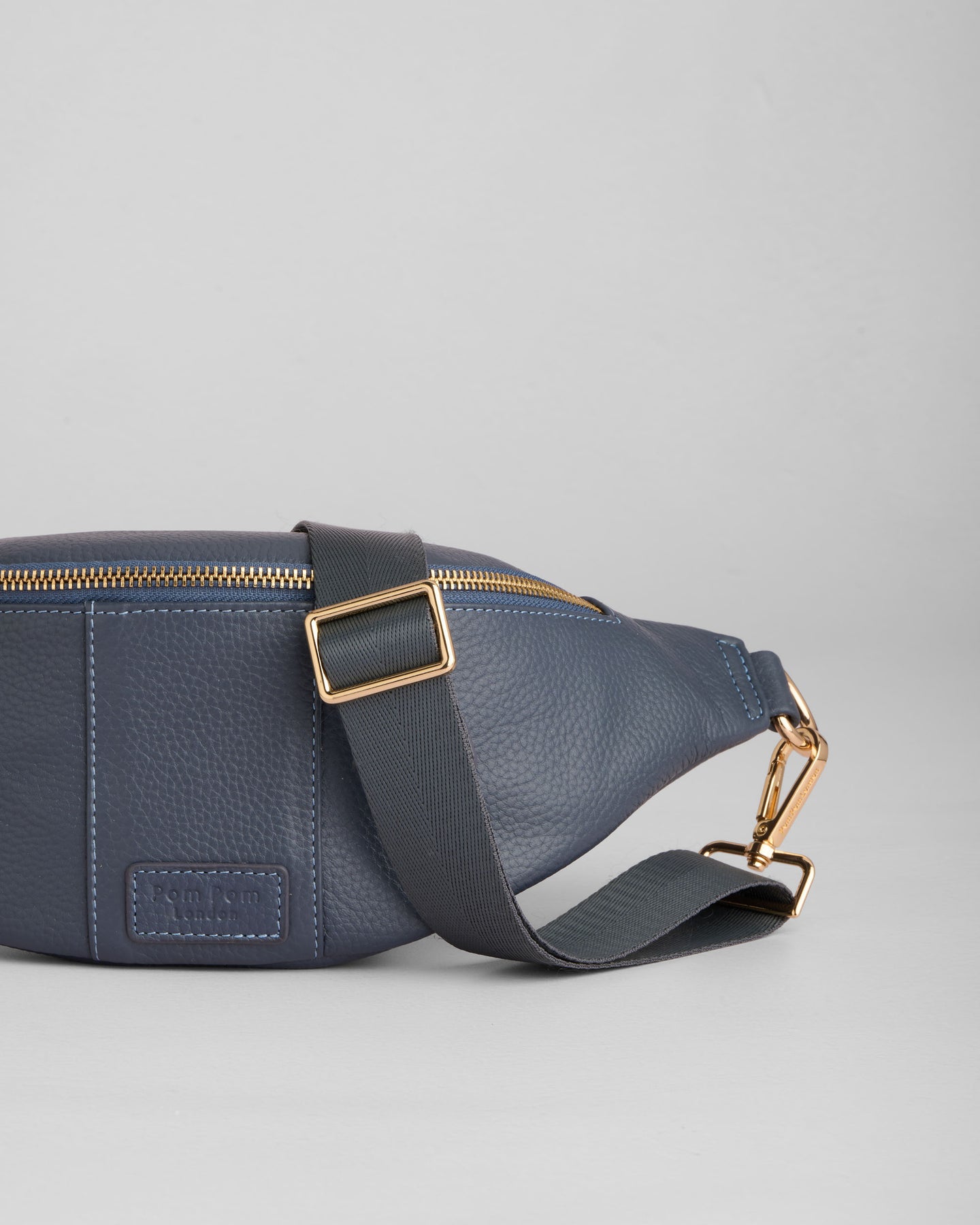 Pom Pom London Bum Bag in Slate Blue - A stylish and practical hands-free bag, perfect for everyday wear.