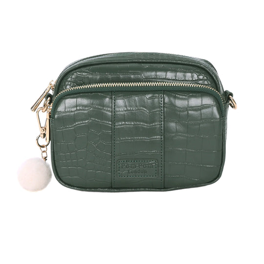 • Pom Pom London Original Bag Croc in Pine Green - A premium crossbody in textured croc-embossed leather.