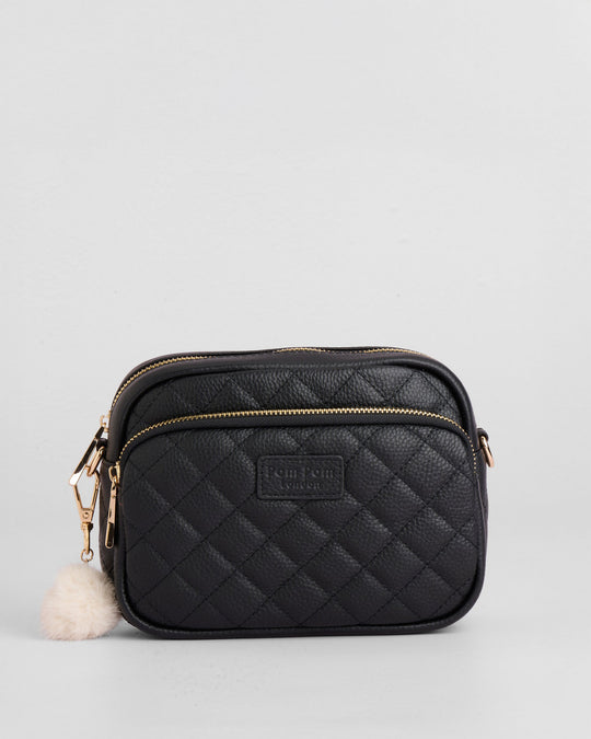 - Pom Pom London Quilted Original Bag in Black - A stylish crossbody crafted in quilted full grain leather.