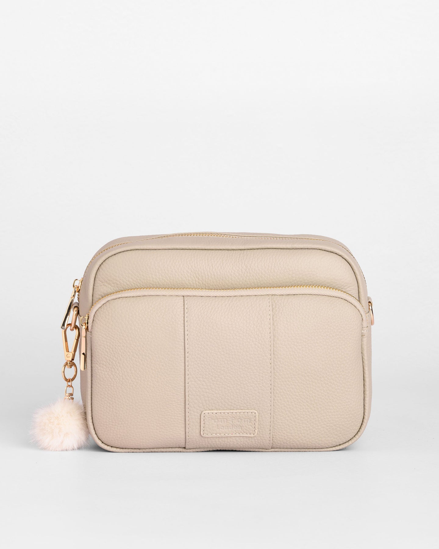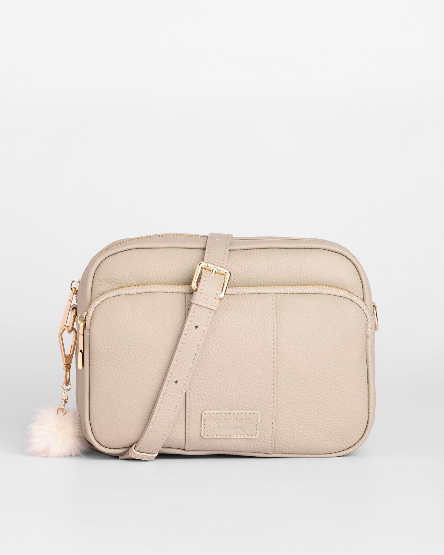 Pom Pom London Original Plus bag in Stone - A classic crossbody bag in a timeless core colour.
