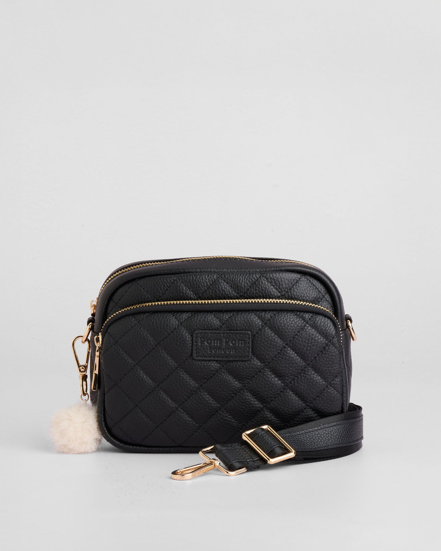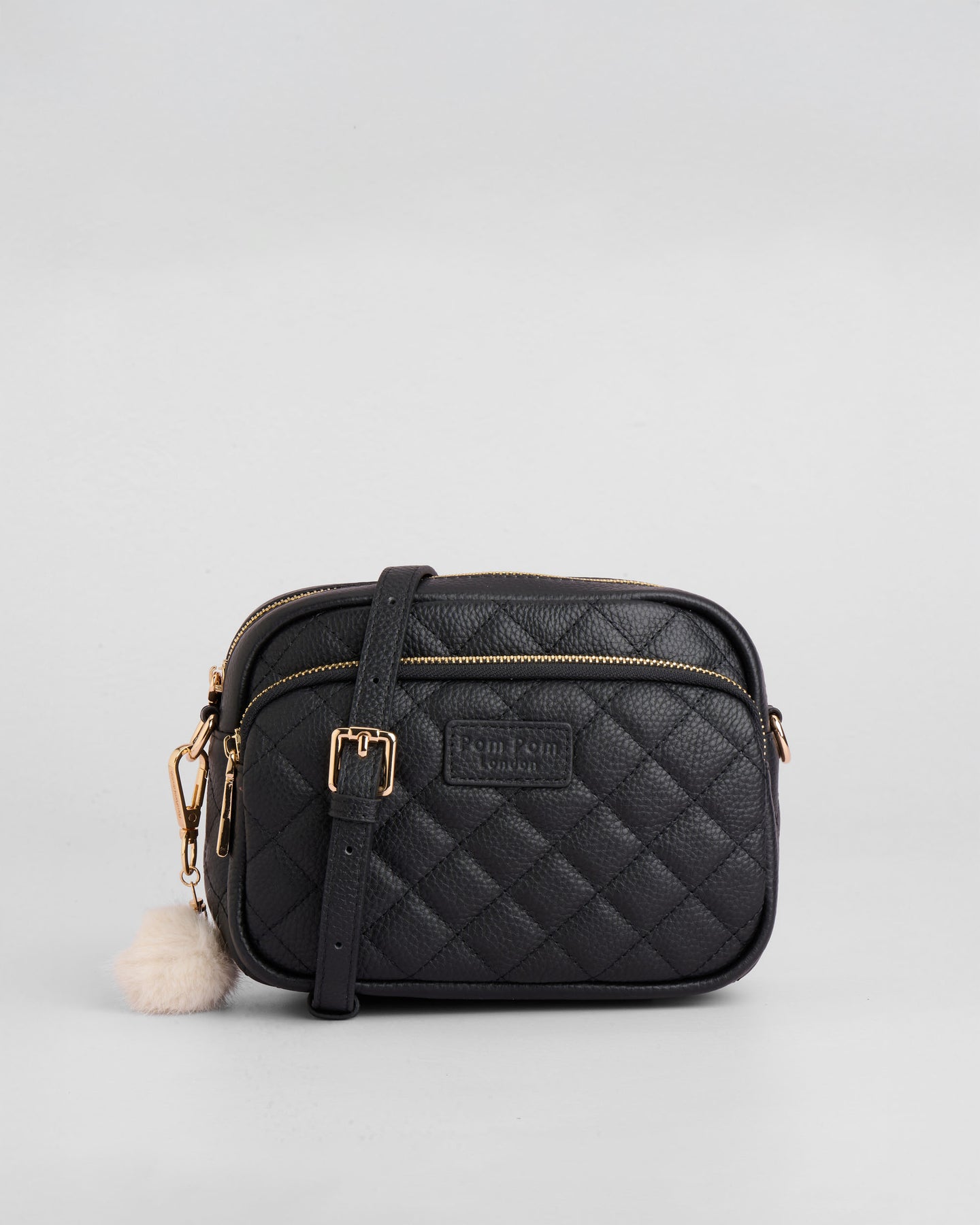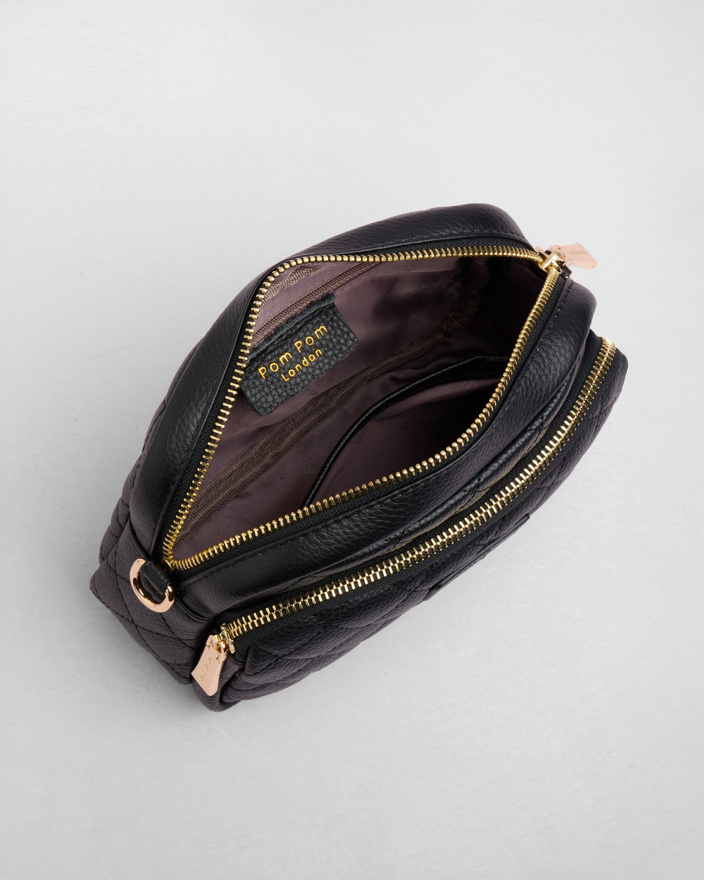 - Pom Pom London Quilted Original Bag in Black - A stylish crossbody crafted in quilted full grain leather.
