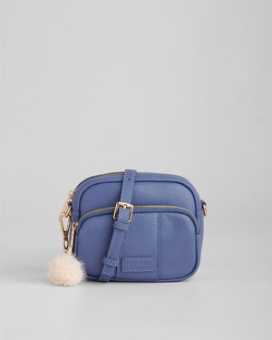 • Pom Pom London Original Mini Bag in Lupin Blue - A stylish crossbody bag in a vibrant new season shade.
