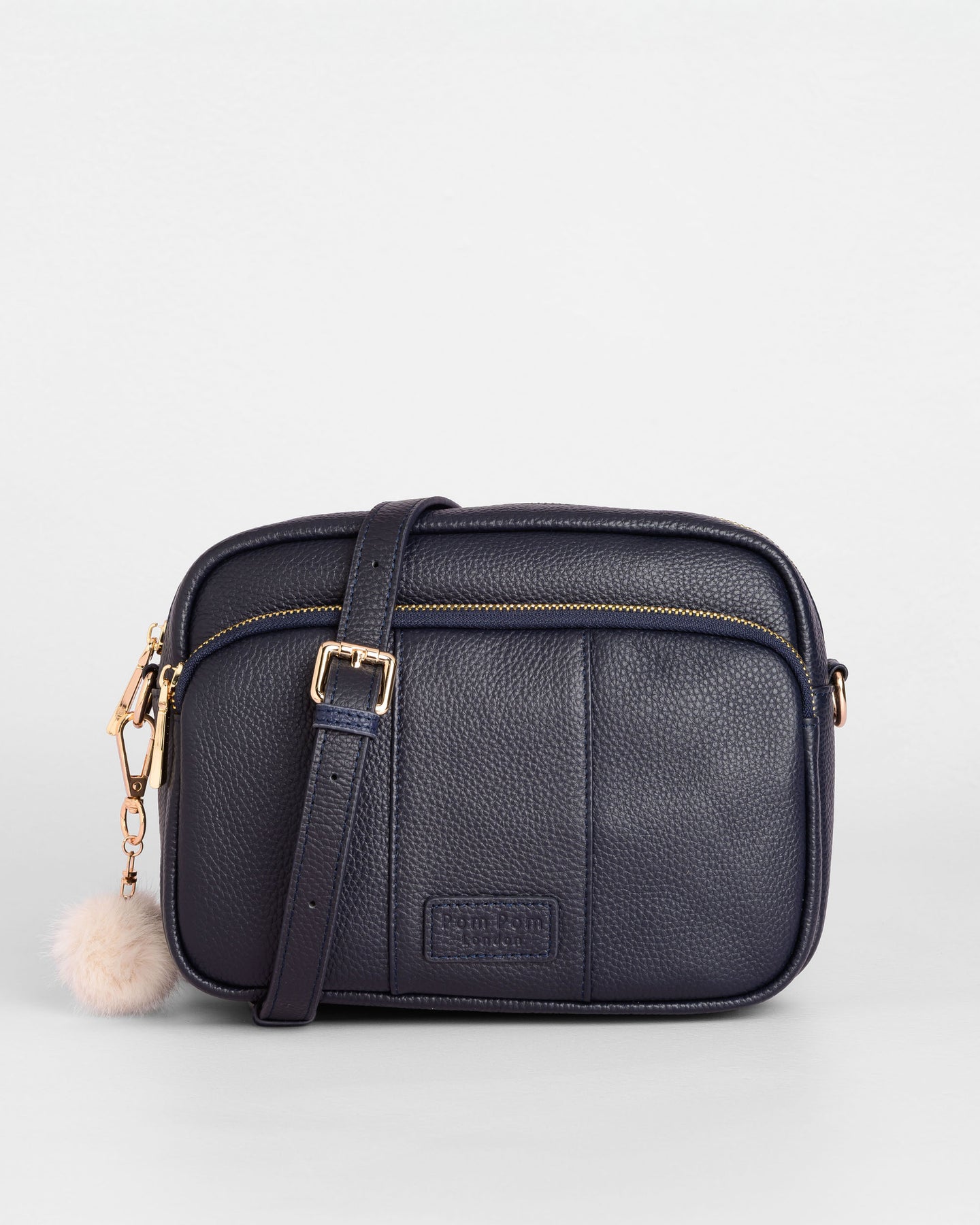 • Pom Pom London Original Plus bag in Navy - A classic crossbody bag in a timeless core colour.