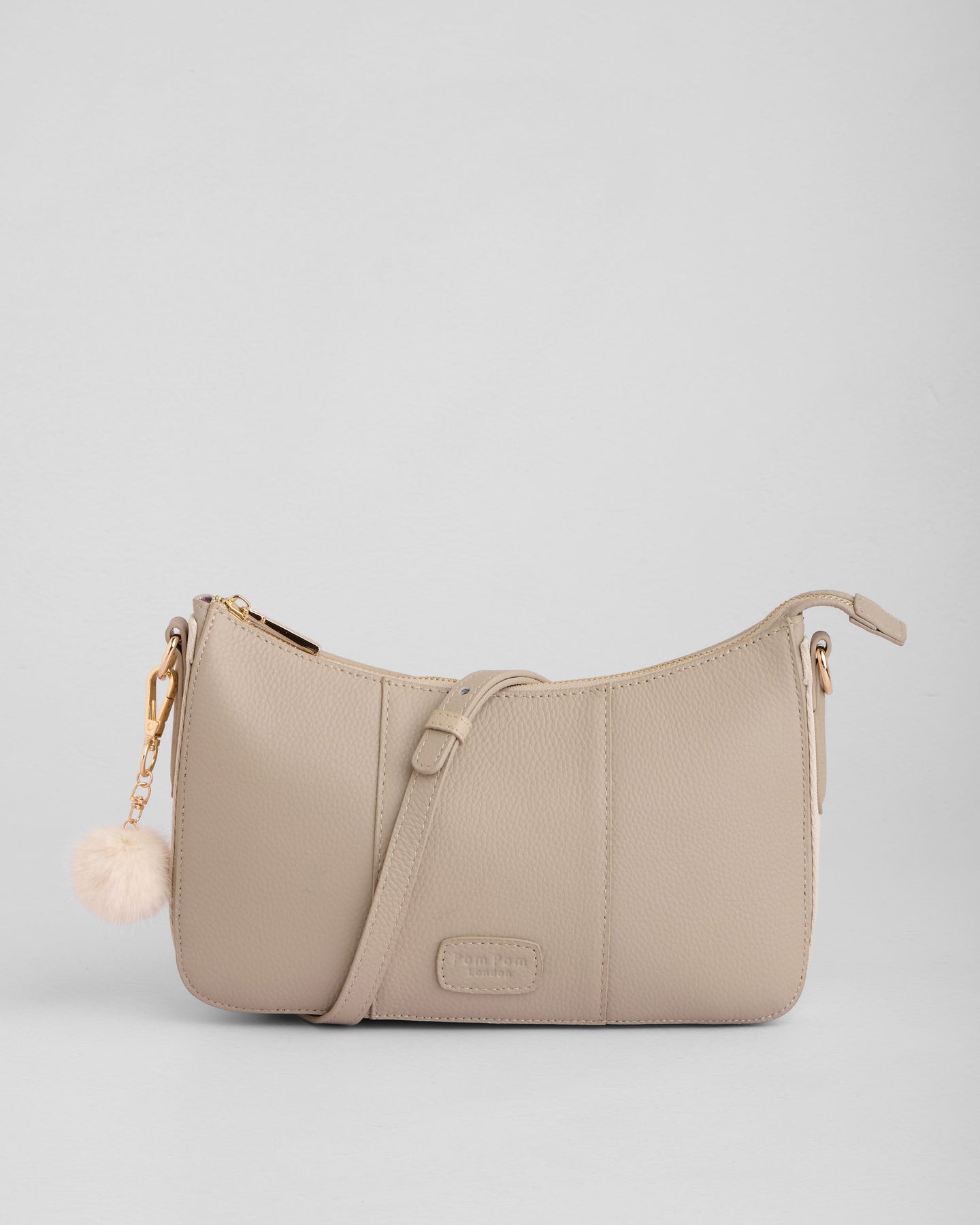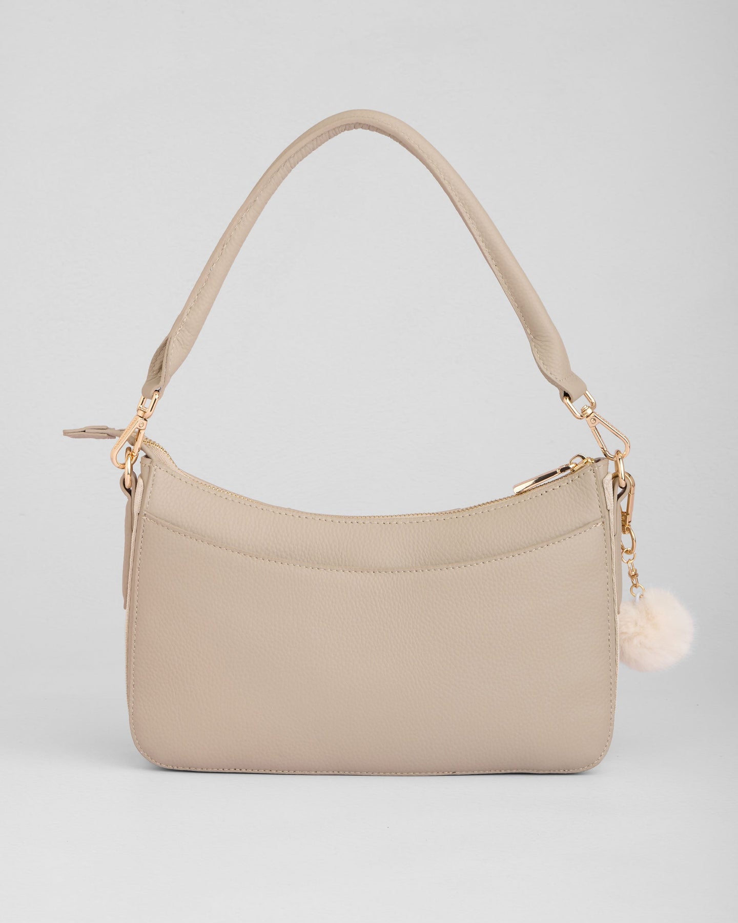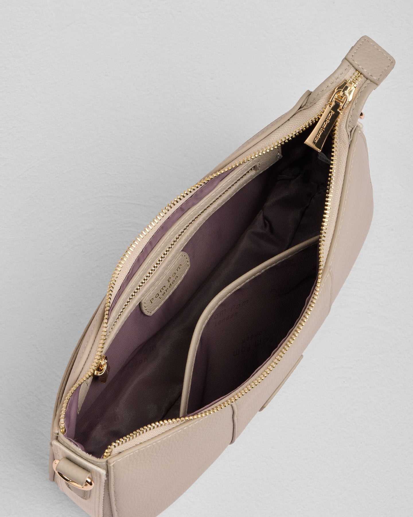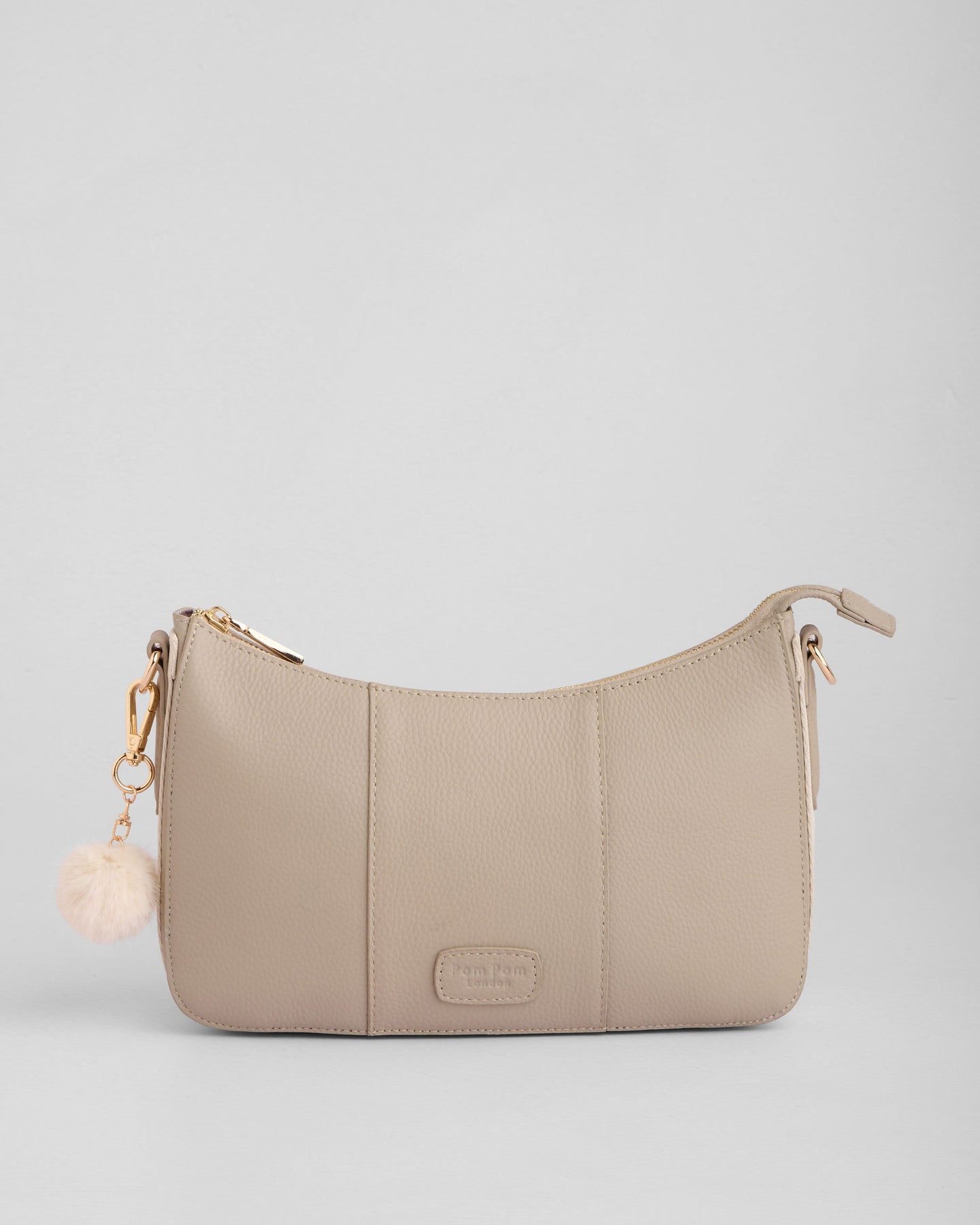 • Pom Pom London Edgware Bag in Stone - A slim, structured shoulder bag with timeless appeal.