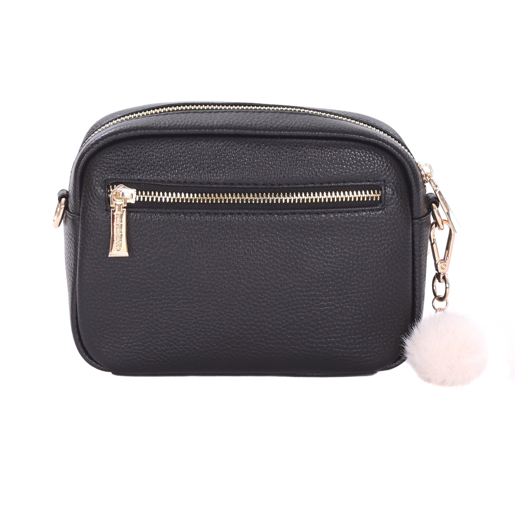 Original Faux Fleece & Leather Bag Black-Pom Pom London