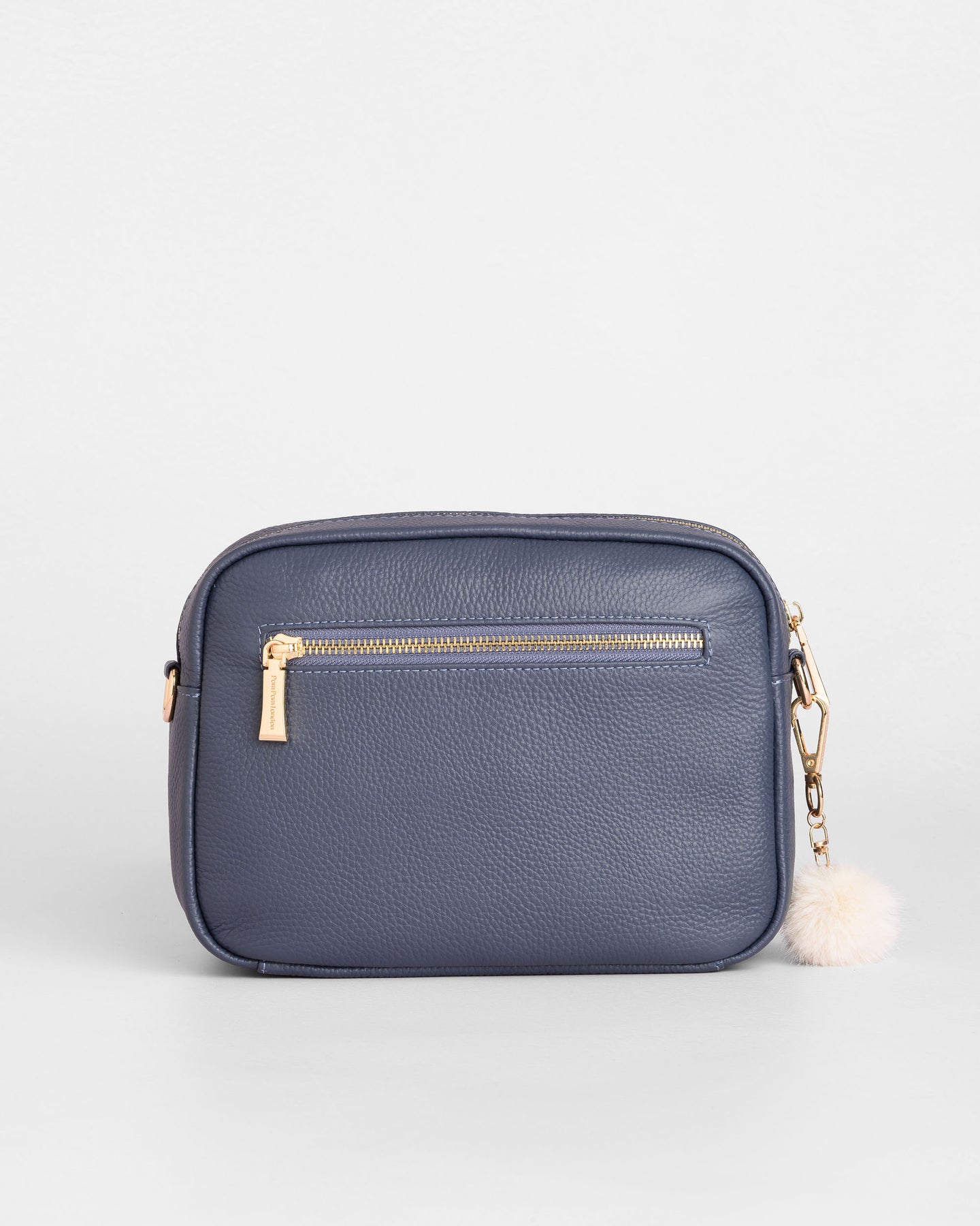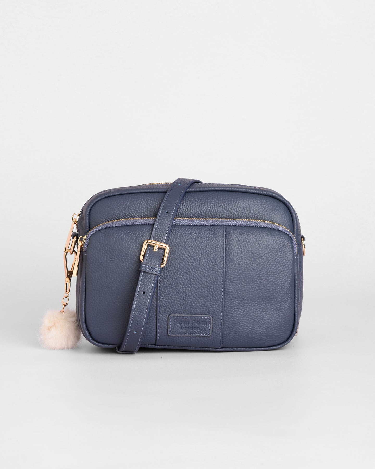 Pom Pom London Original Plus bag in Slate Blue - A classic crossbody bag in a timeless core colour.