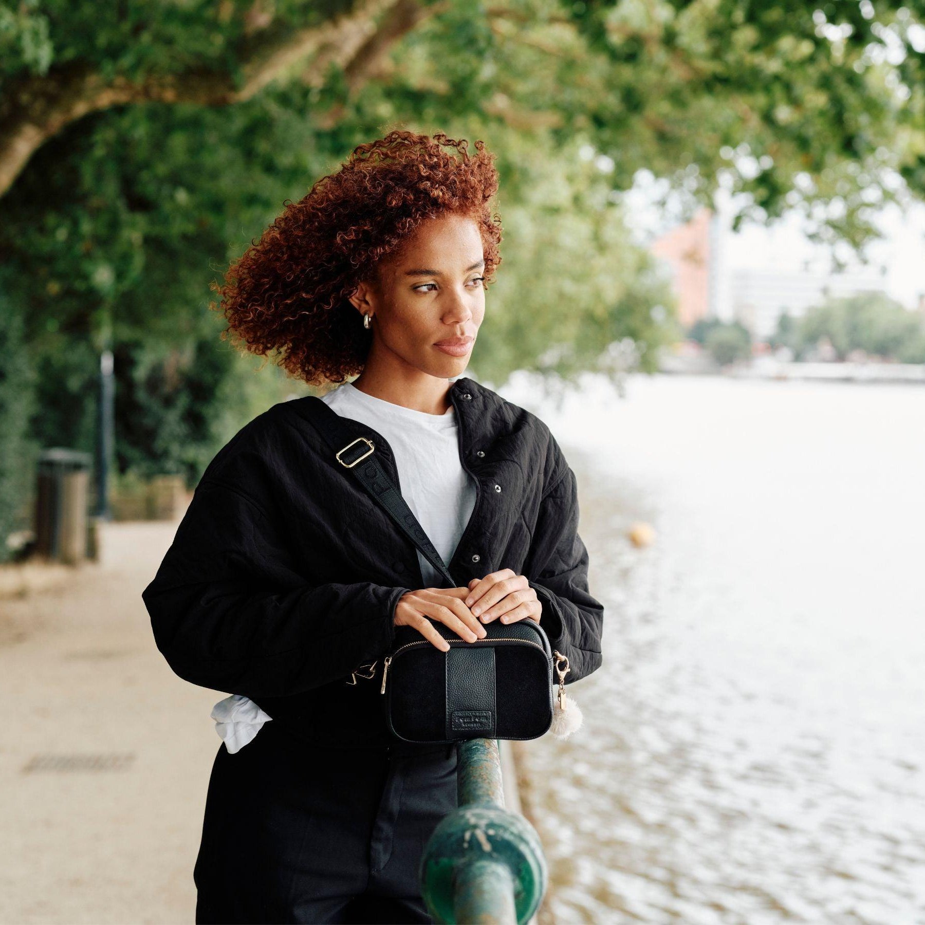 Original Suede & Leather Bag Black-Pom Pom London