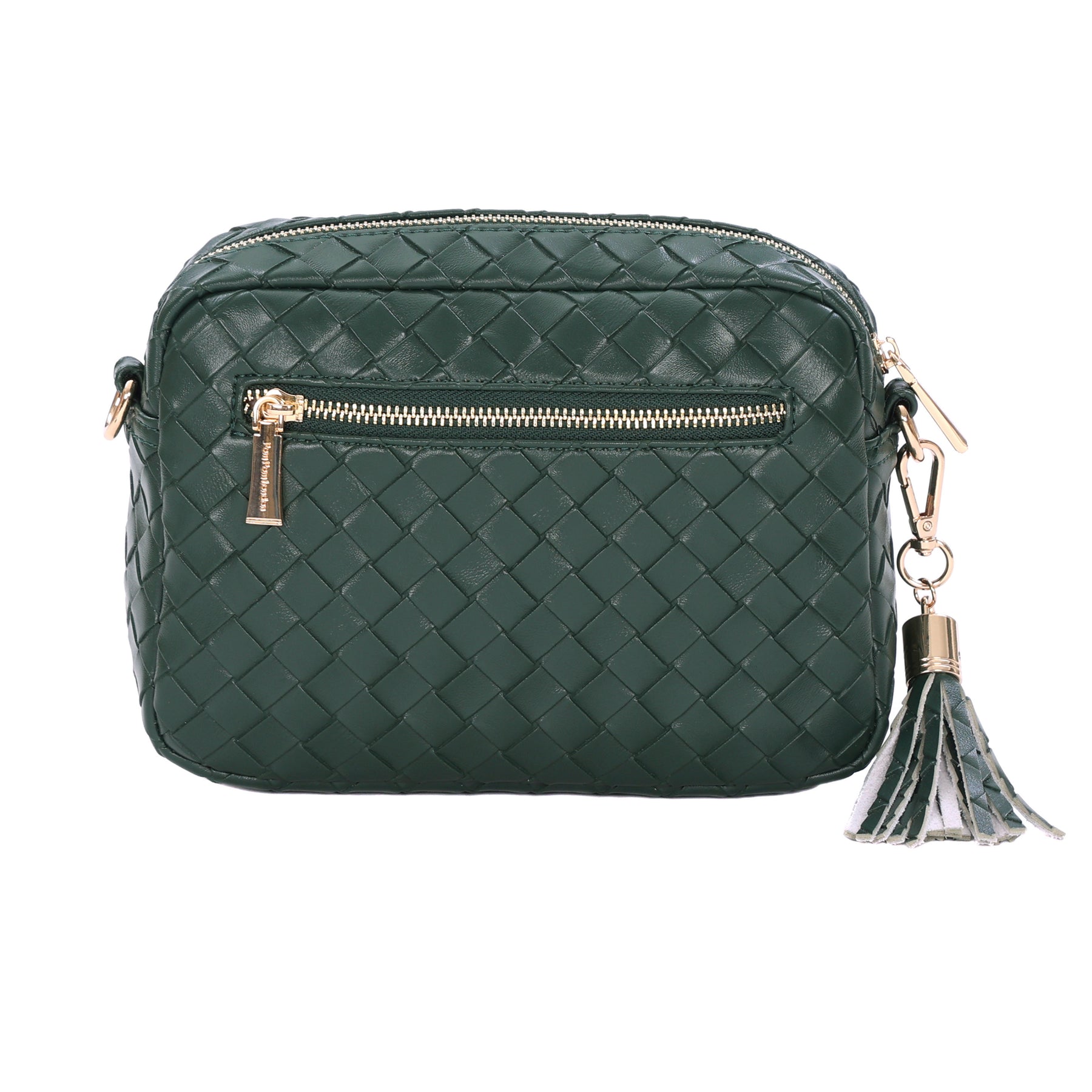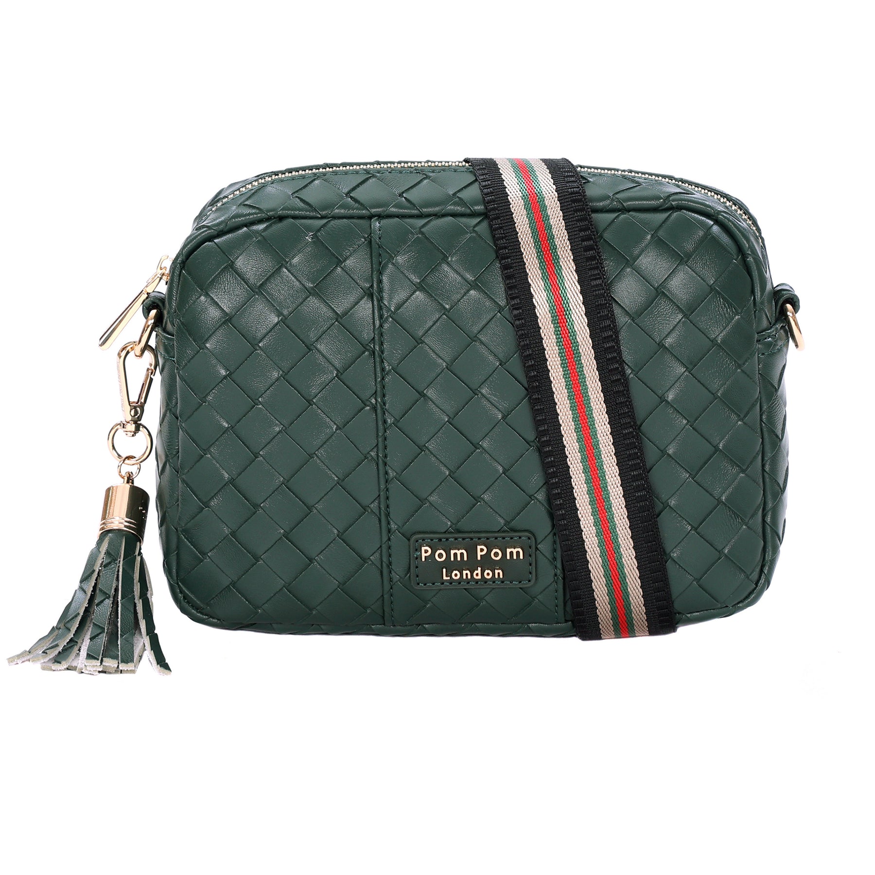 • Pom Pom London City Lattice Bag in Green - A stylish crossbody crafted in genuine leather with a faux leather and lattice overlay.