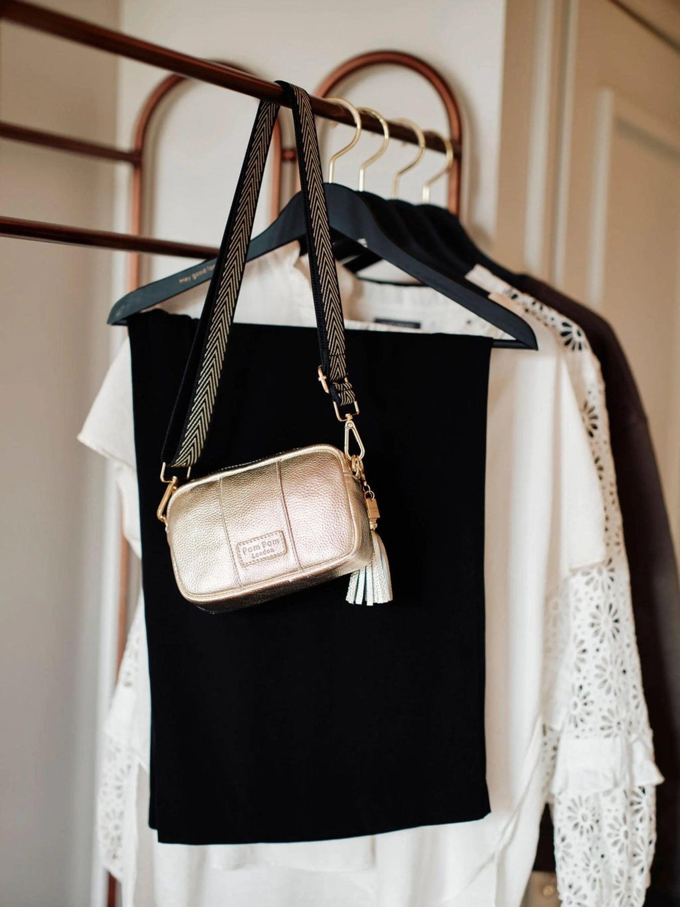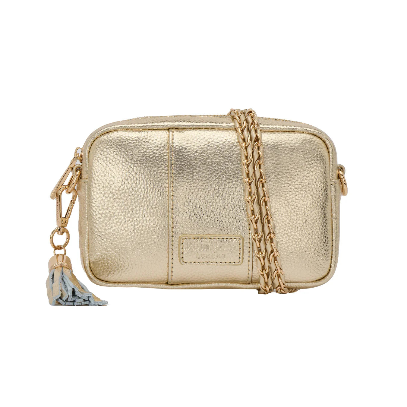 - Pom Pom London City Mini Bag in Metallic Gold - A small crossbody that shines from day to night.