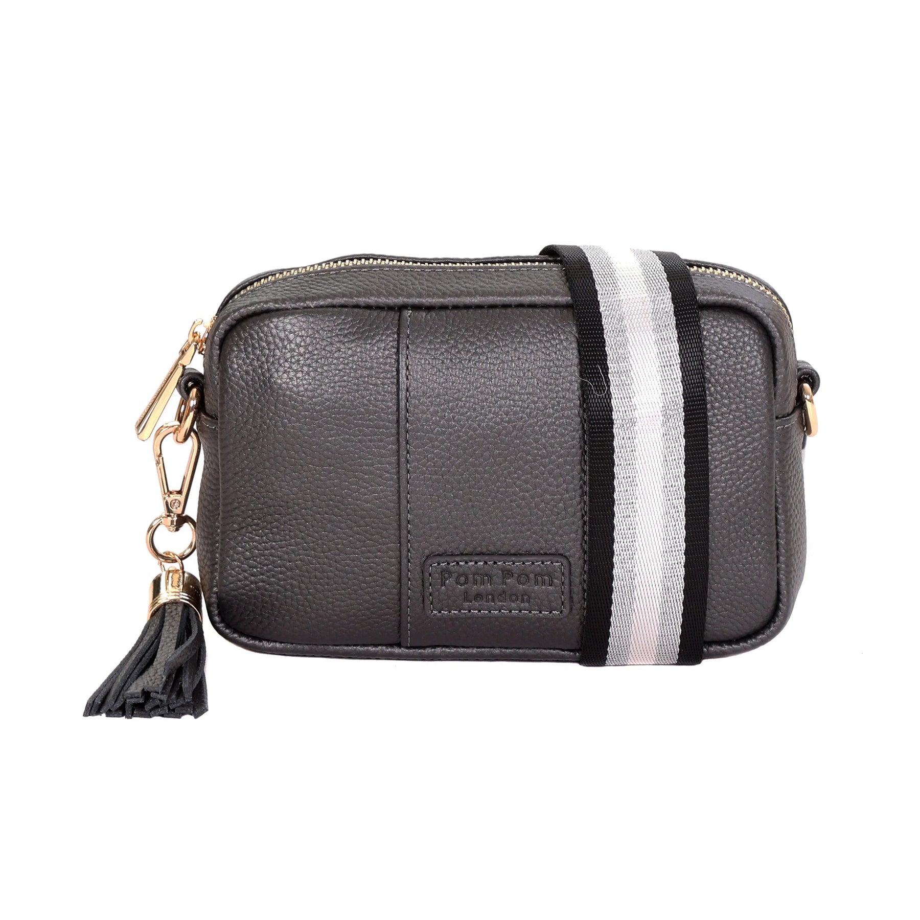 - Pom Pom London City Mini Bag in Metallic Pewter - A small crossbody that shines from day to night.