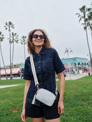 • Pom Pom London City Mini Bag in Salt Grey - A stylish crossbody bag in a vibrant new season shade.