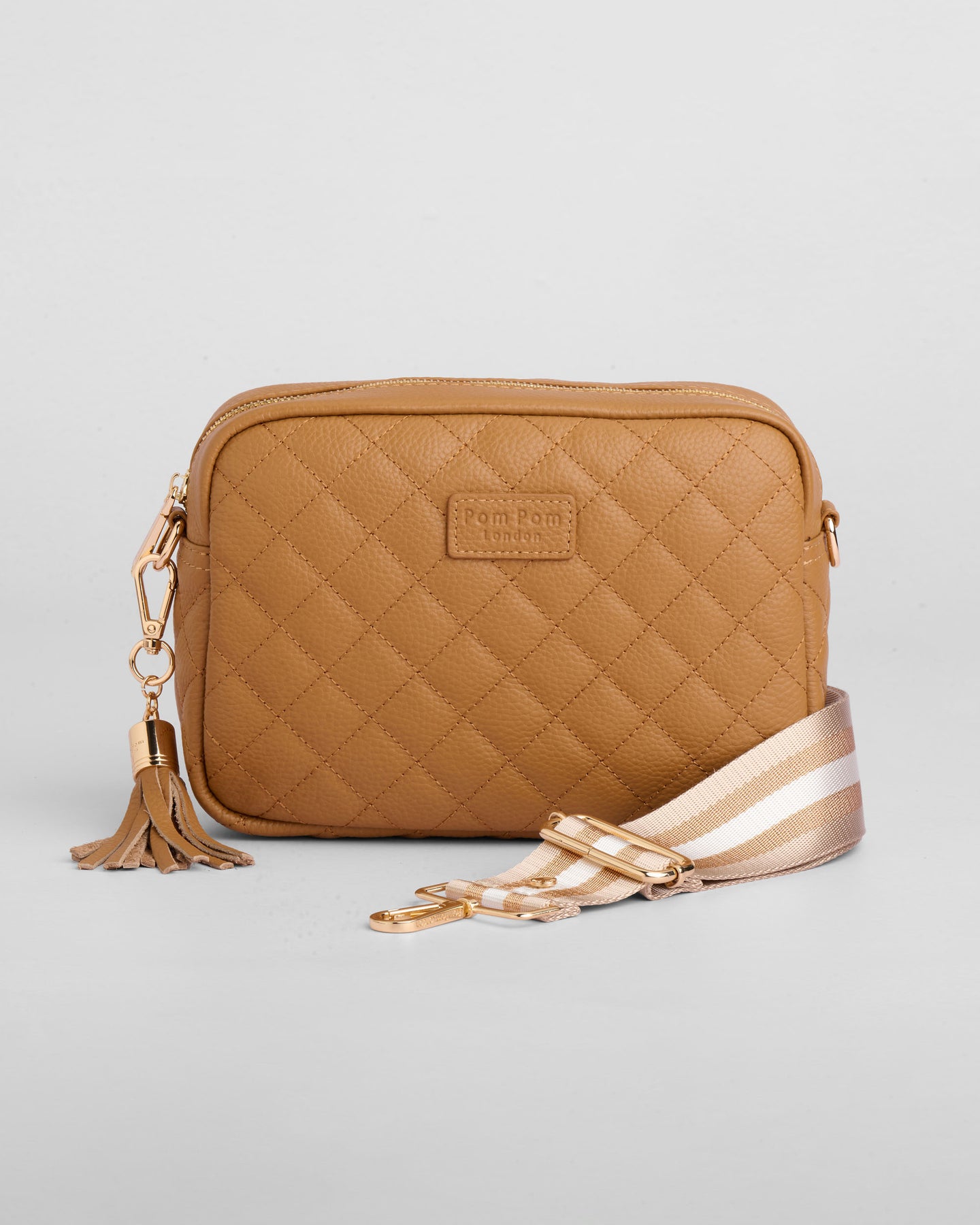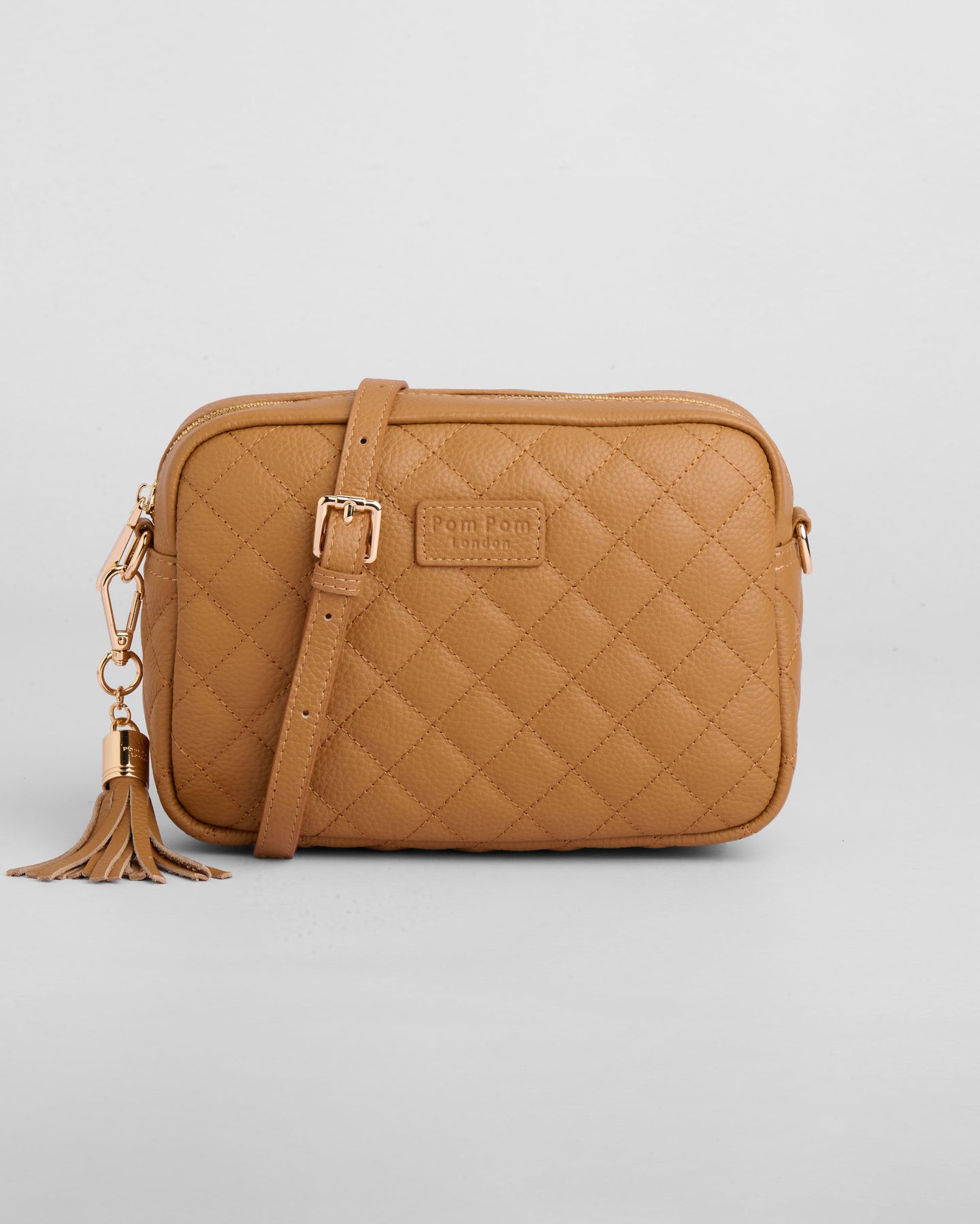 - Pom Pom London Quilted City Bag in Maple - A stylish crossbody crafted in quilted full grain leather.