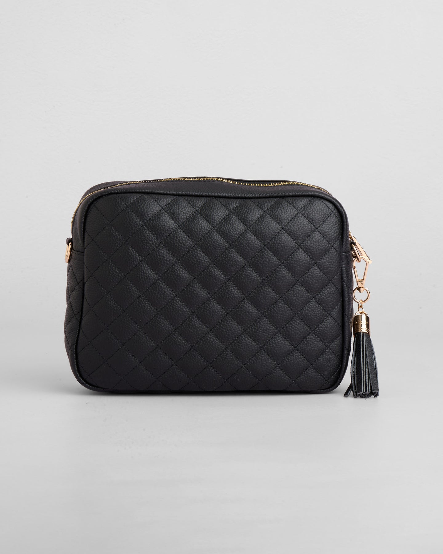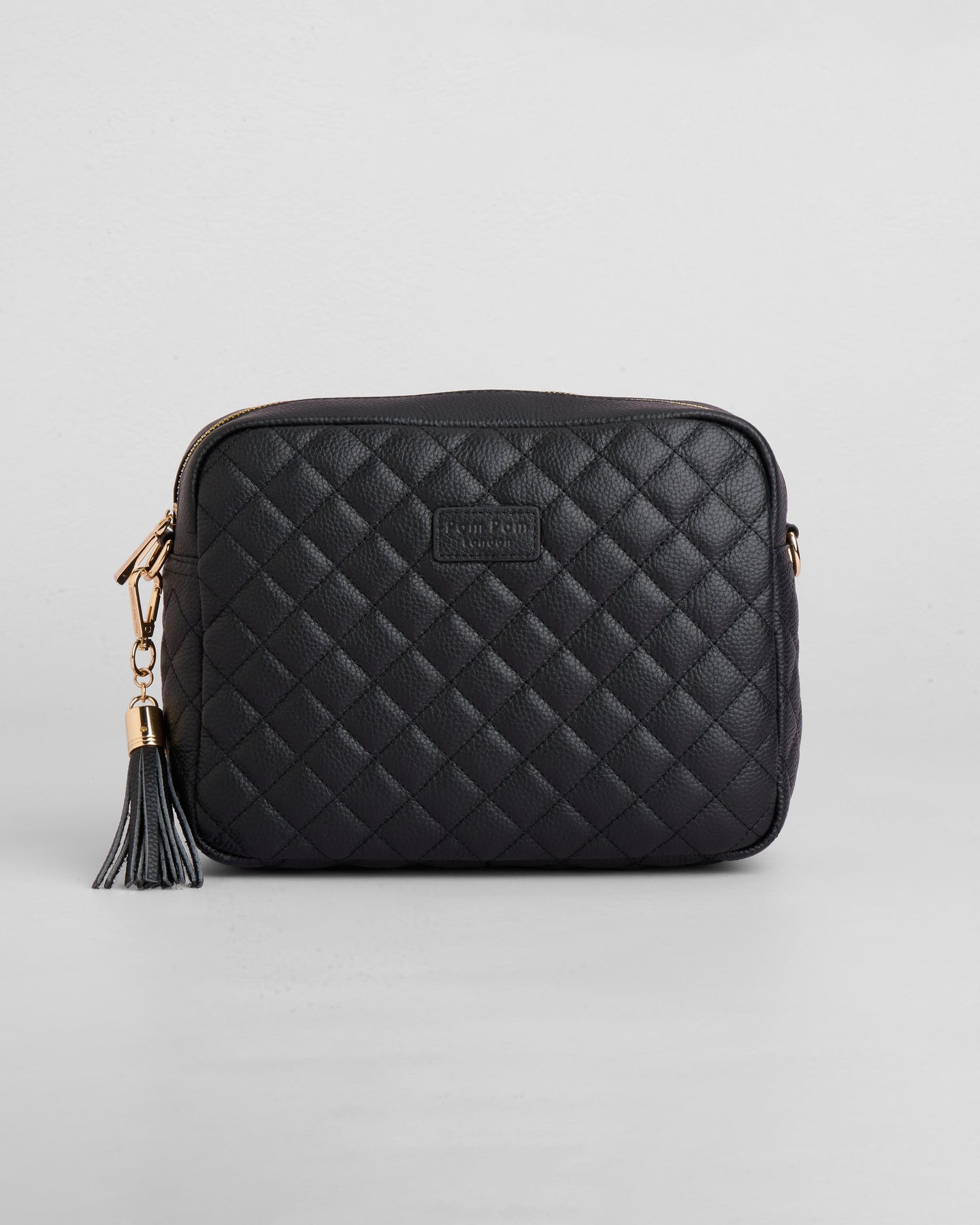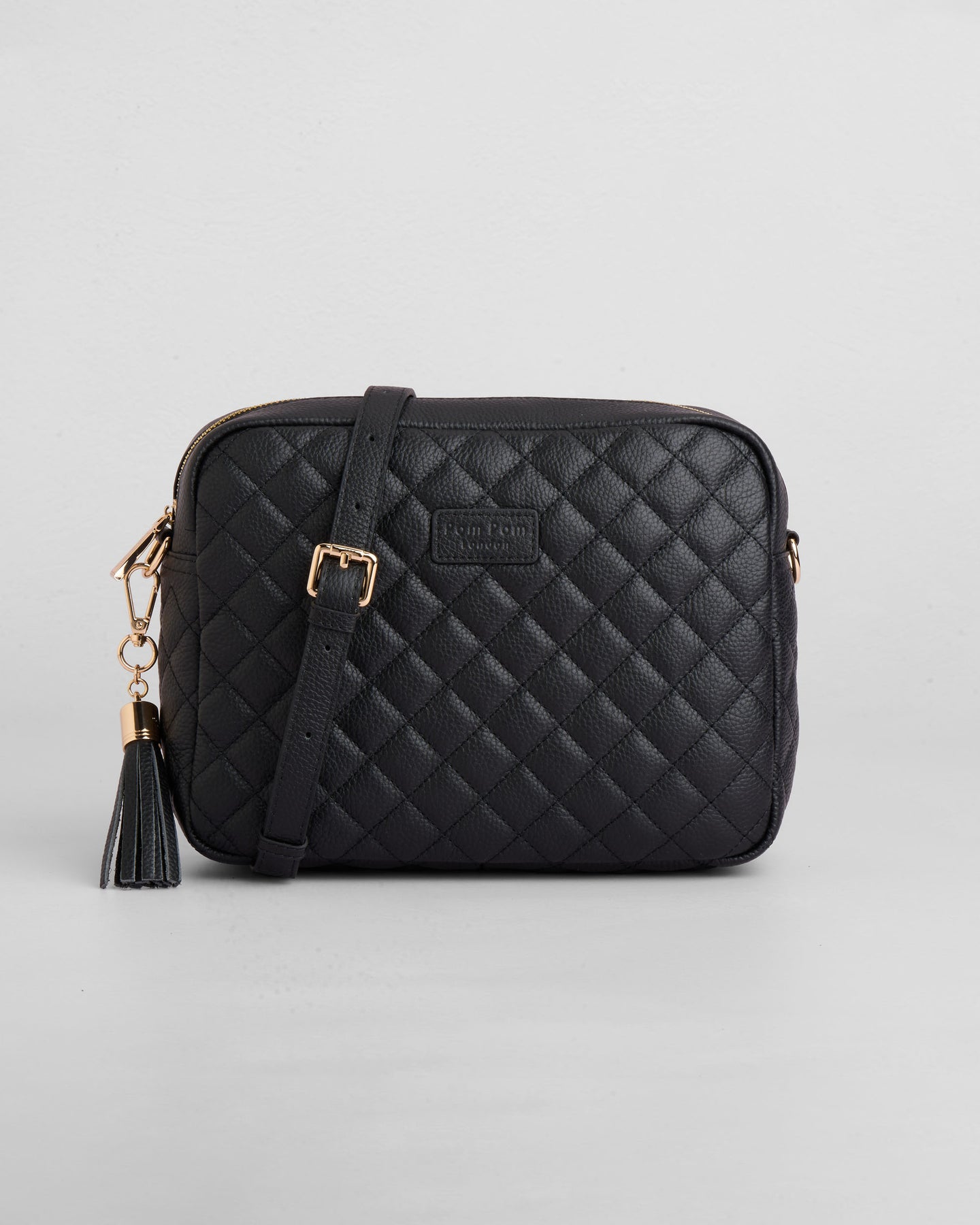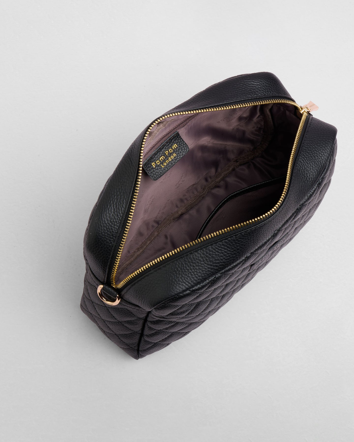 • Pom Pom London Quilted City Plus Bag in Black - A stylish crossbody crafted in quilted full grain leather.