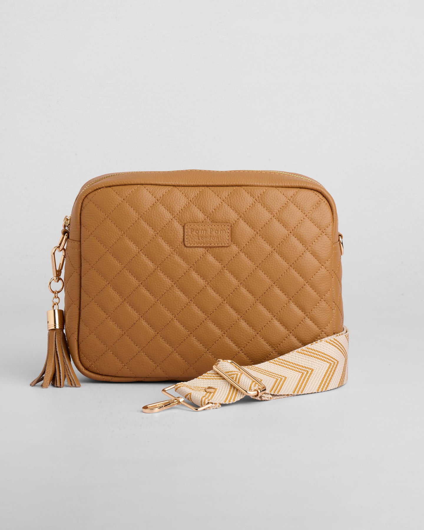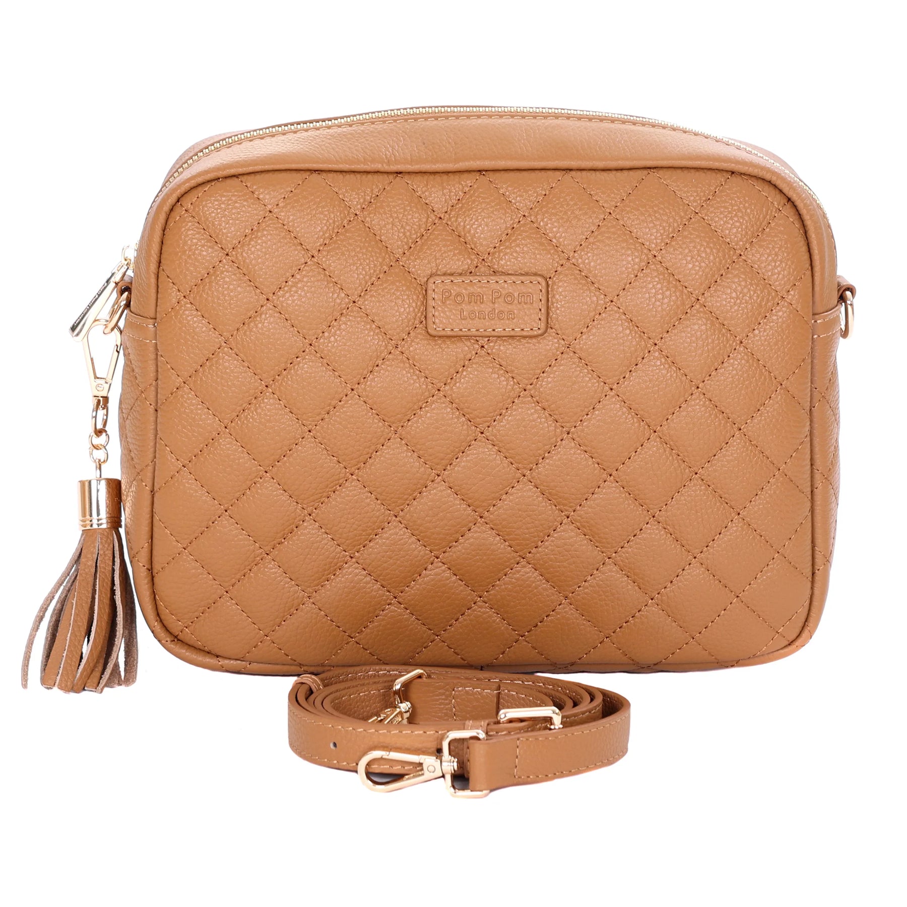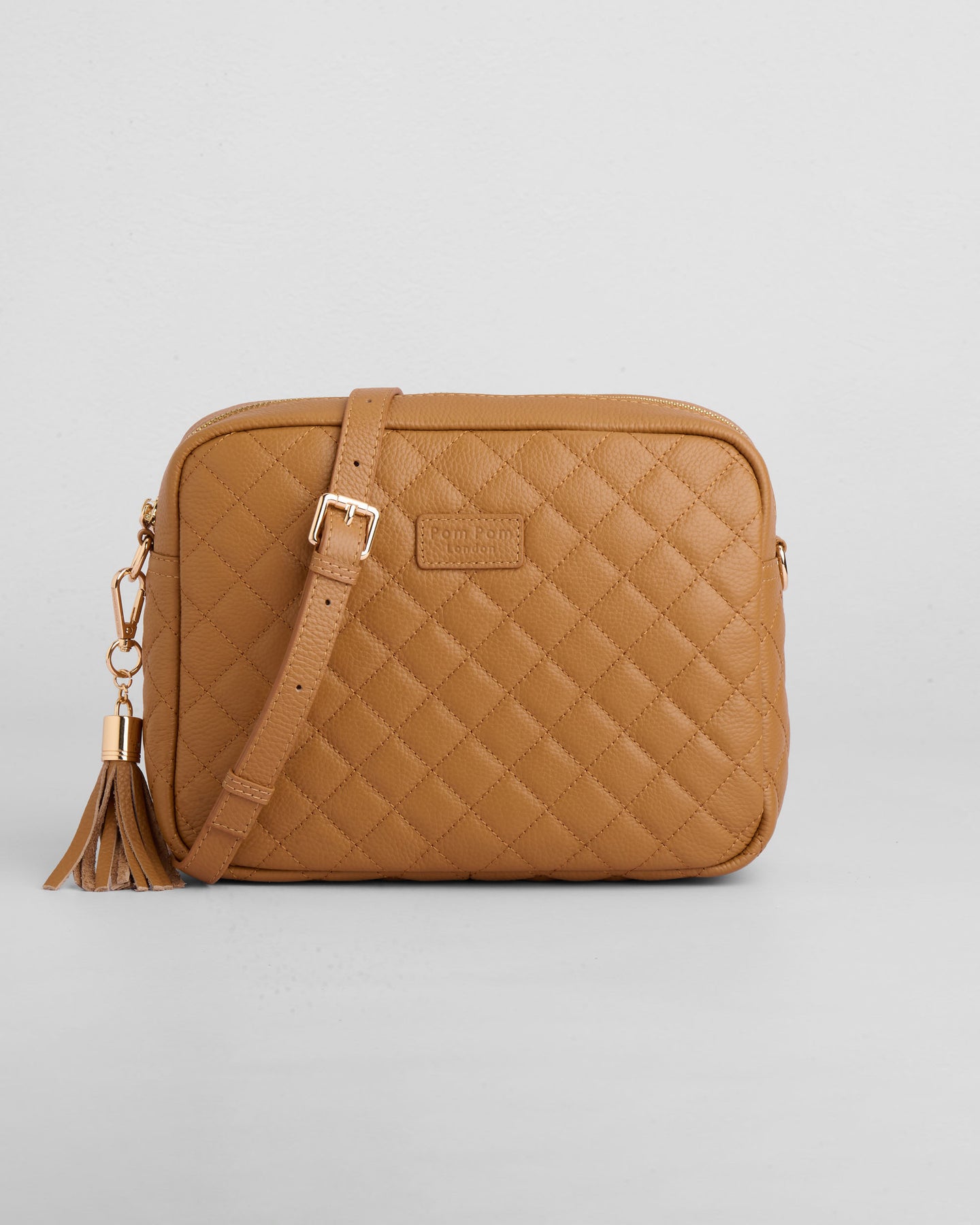 - Pom Pom London Quilted City Plus Bag in Maple - A stylish crossbody crafted in quilted full grain leather.
