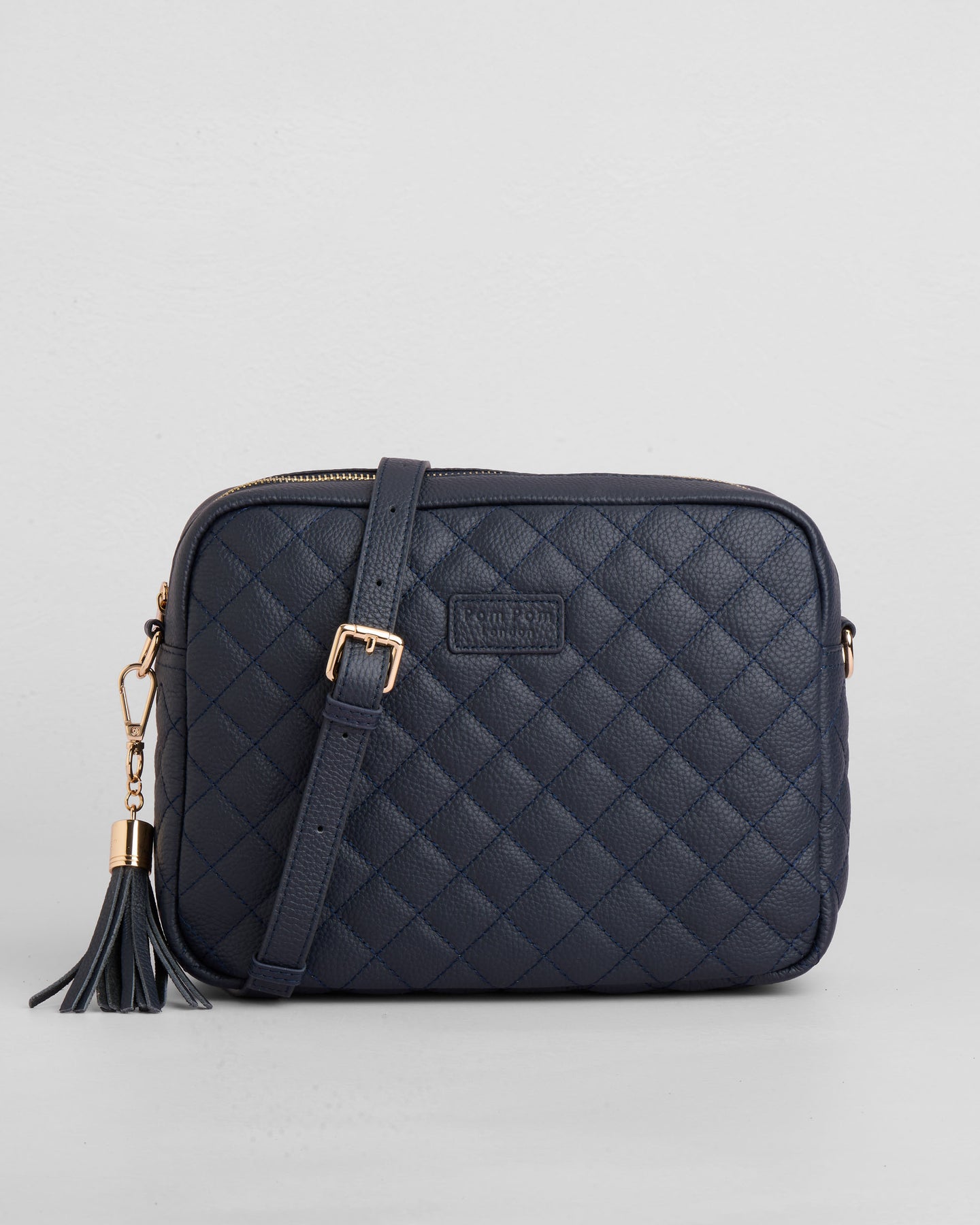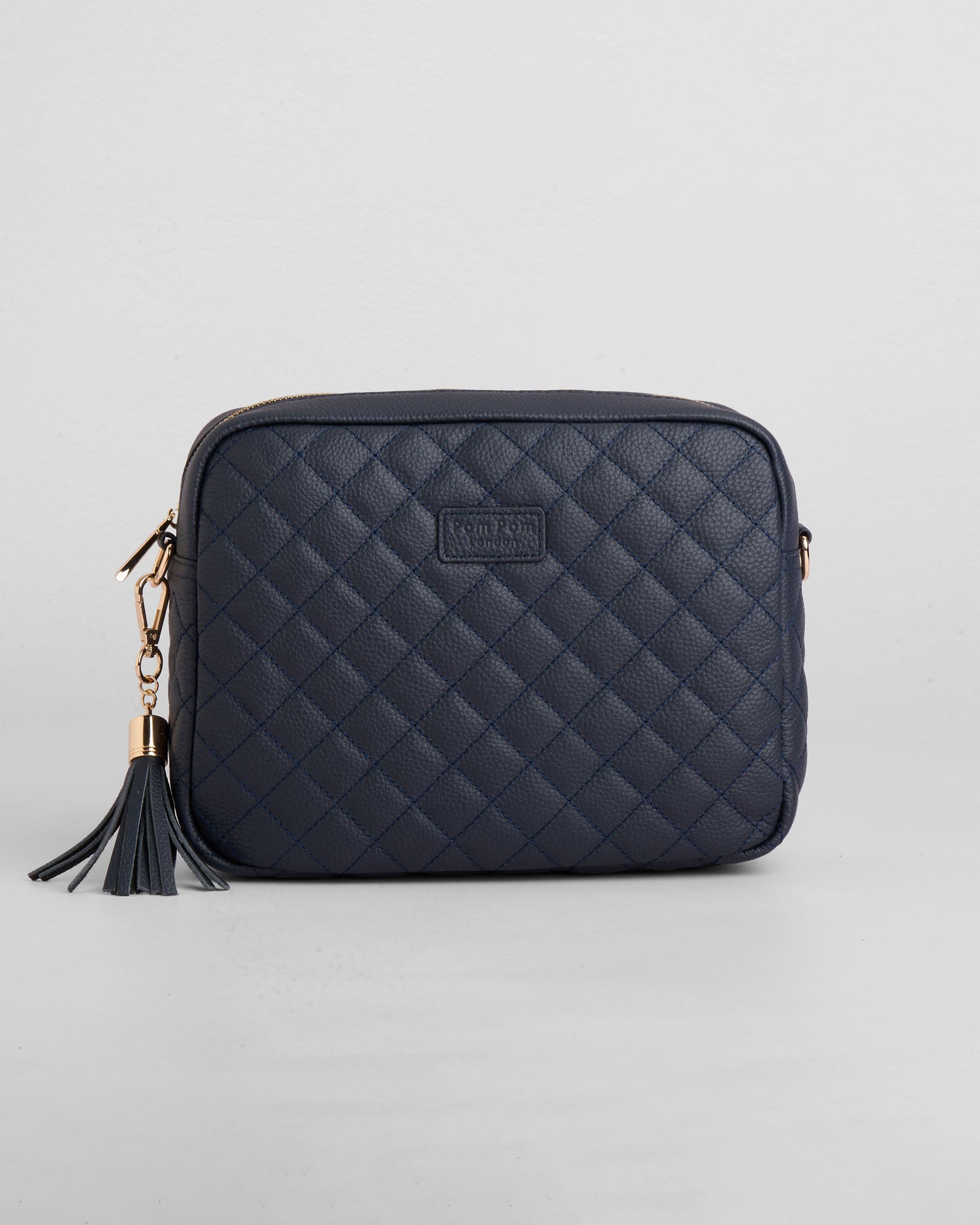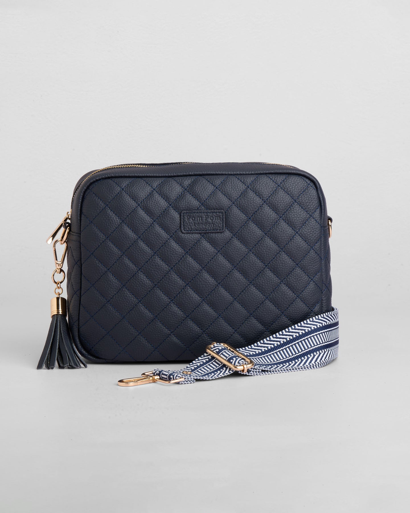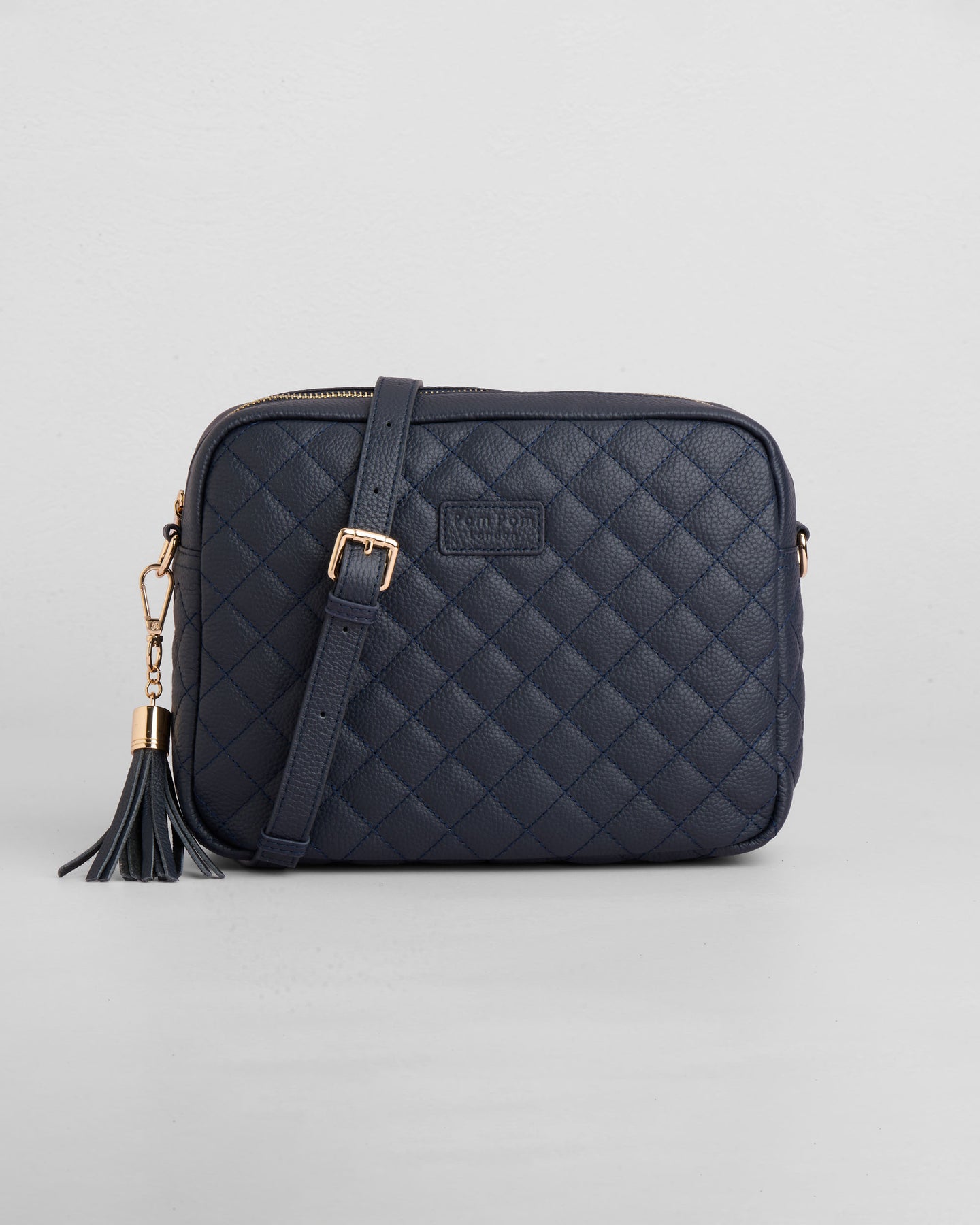 - Pom Pom London Quilted City Plus Bag in Navy - A stylish crossbody crafted in quilted full grain leather.