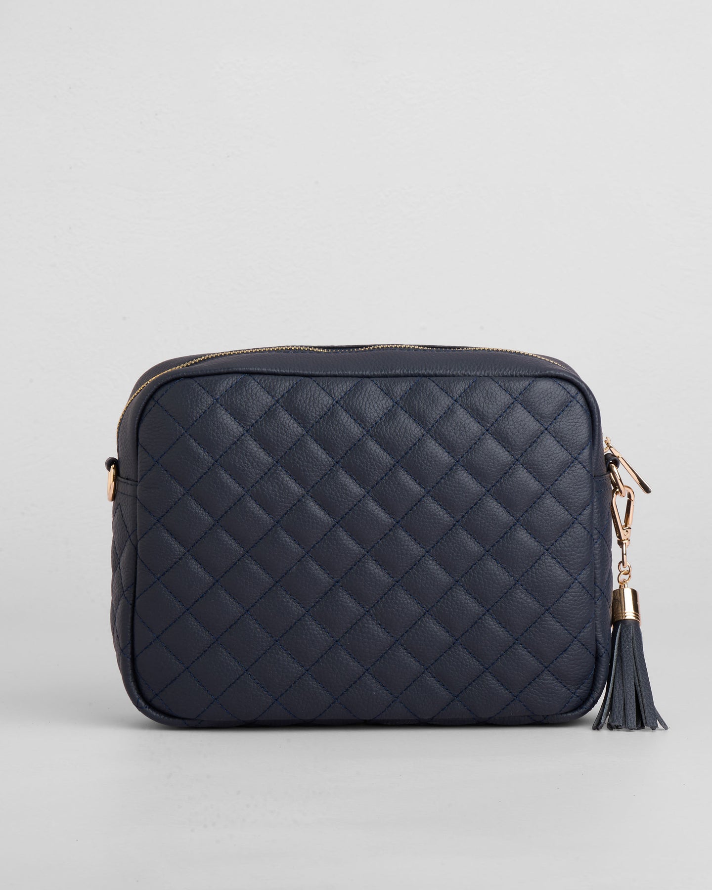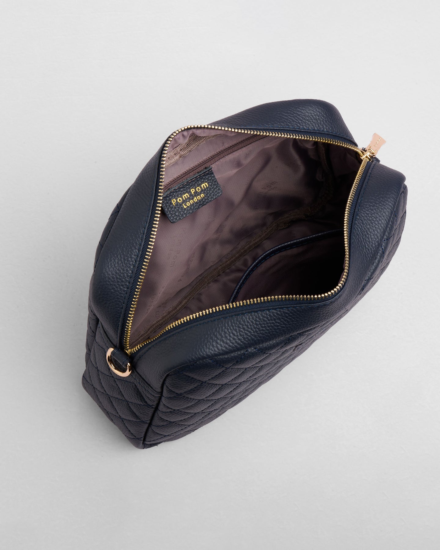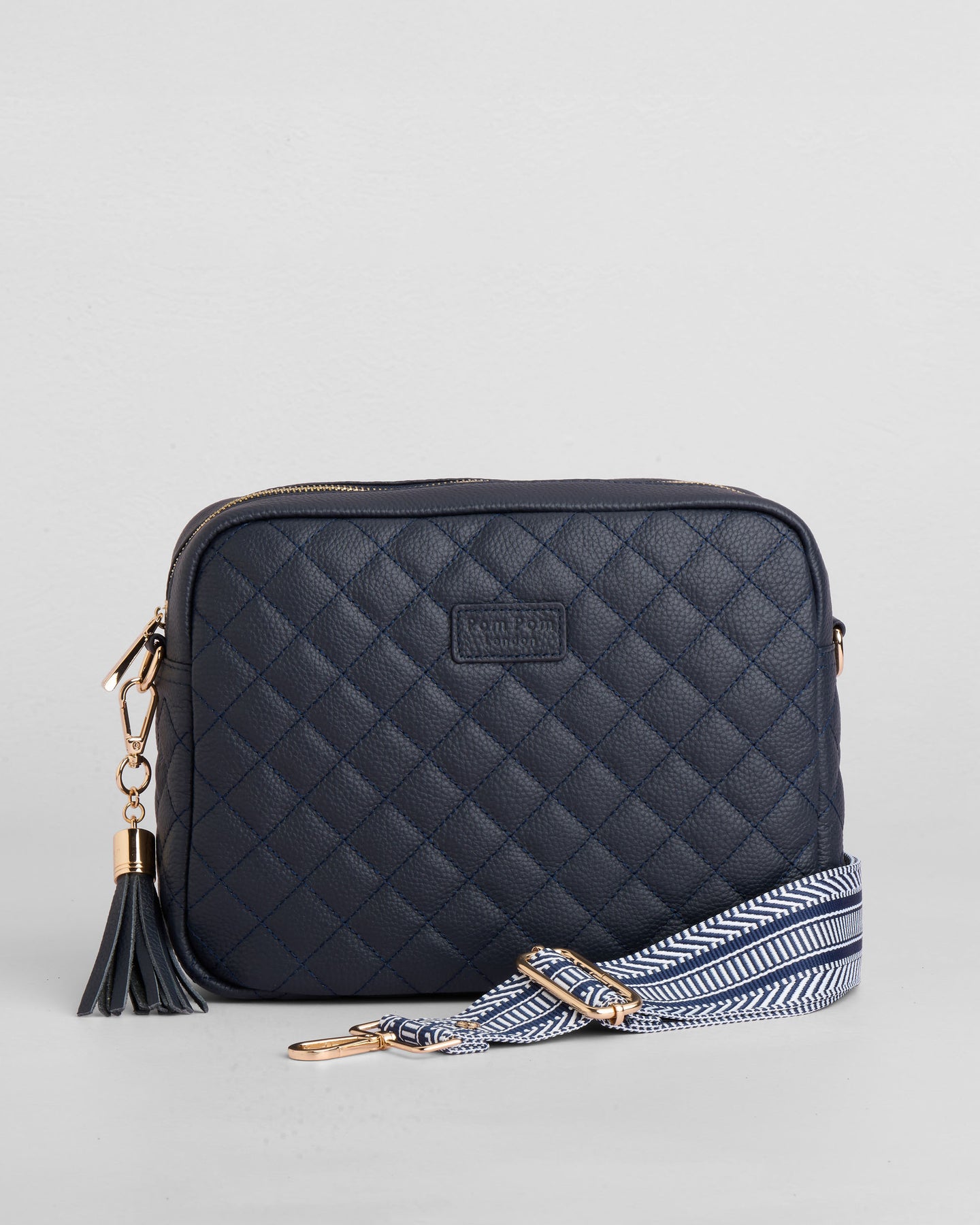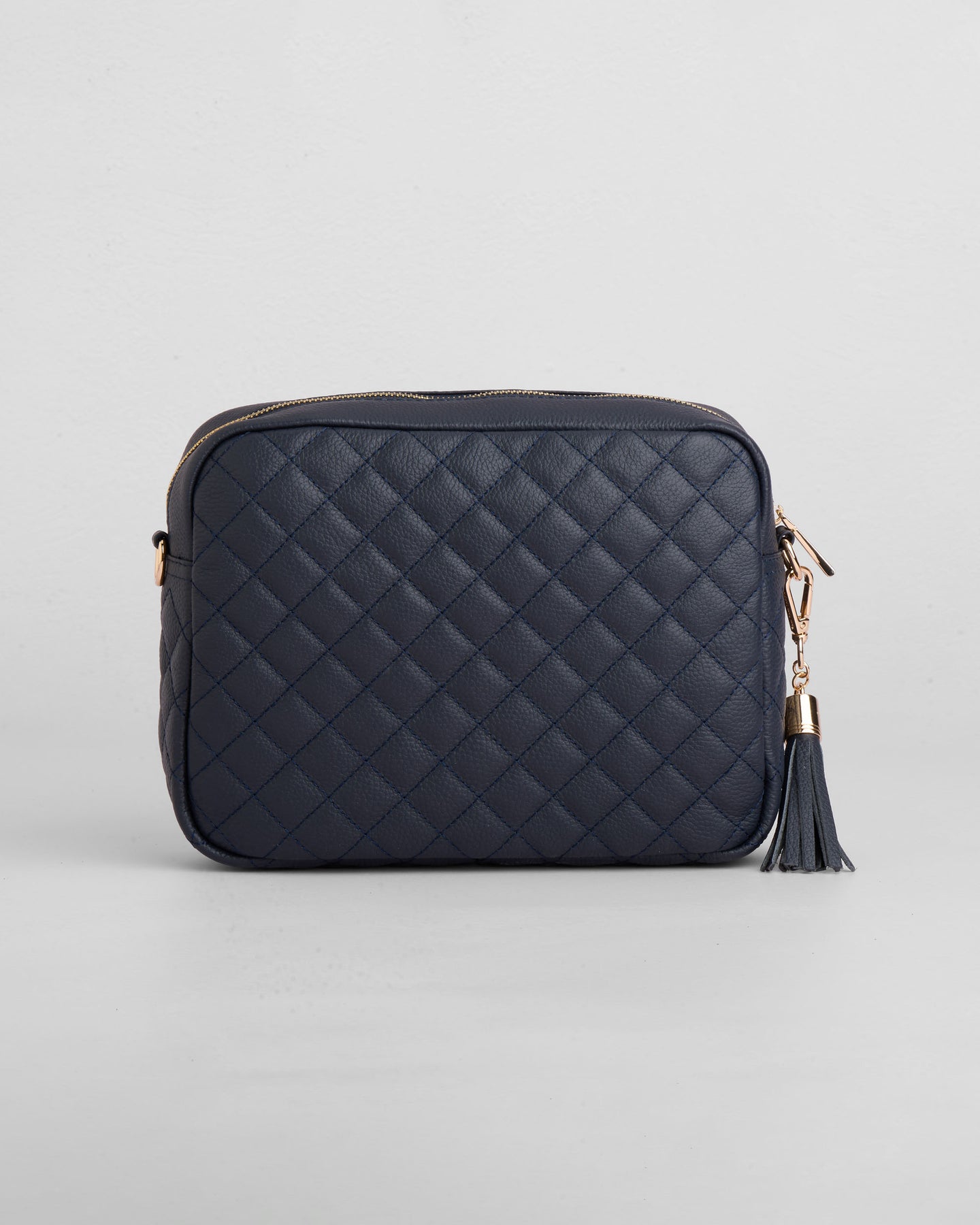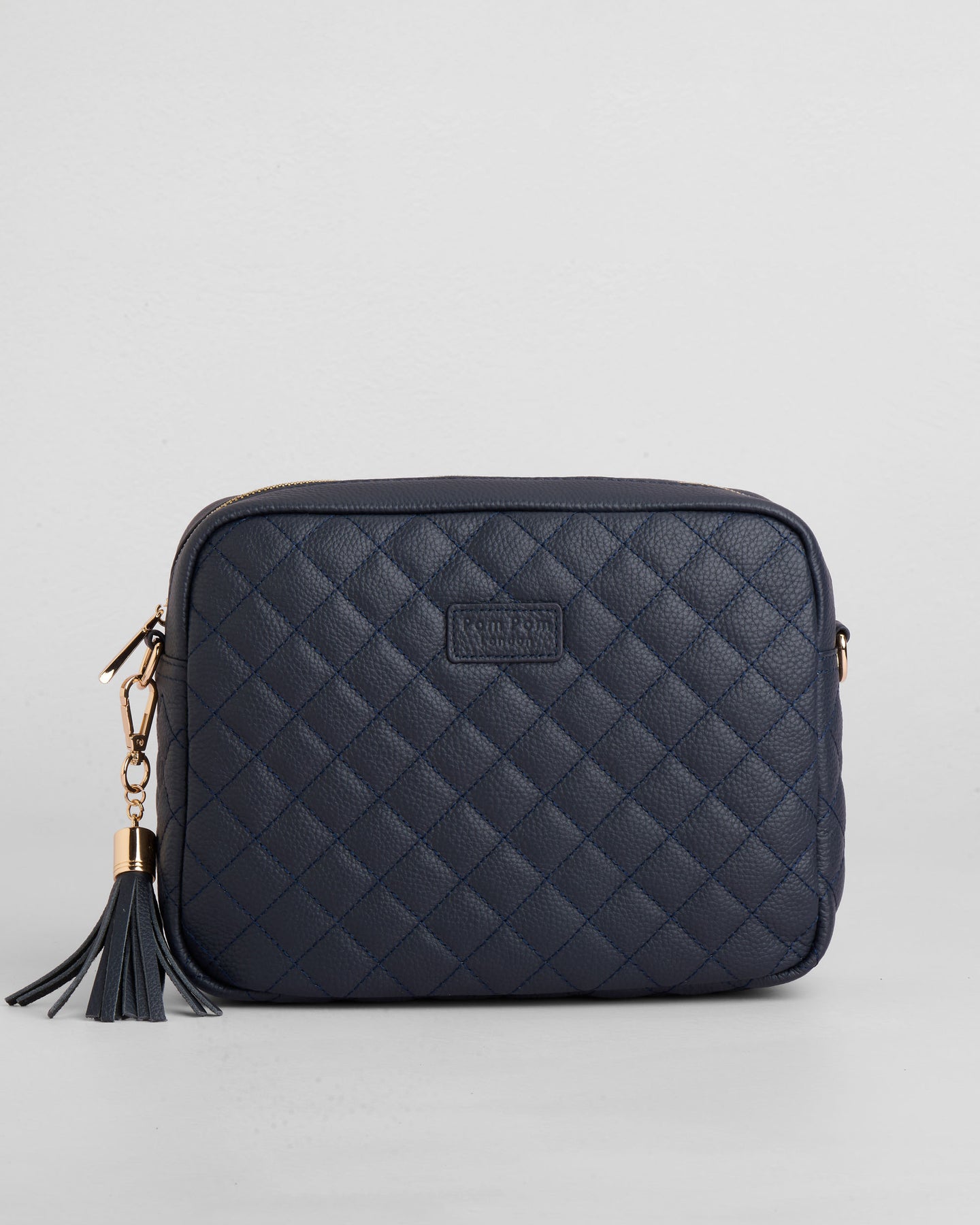 - Pom Pom London Quilted City Plus Bag in Navy - A stylish crossbody crafted in quilted full grain leather.