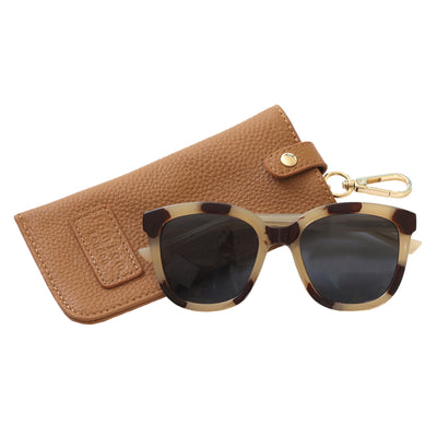 Introducing the Pom Pom London Glasses Case Maple, the ultimate accessory for any of our bags. This simple design in leather with a premium lining is the perfect home for your glasses. The case also features a security popper at the top to keep your glasses secure, as well as a clip to attach to your bag.