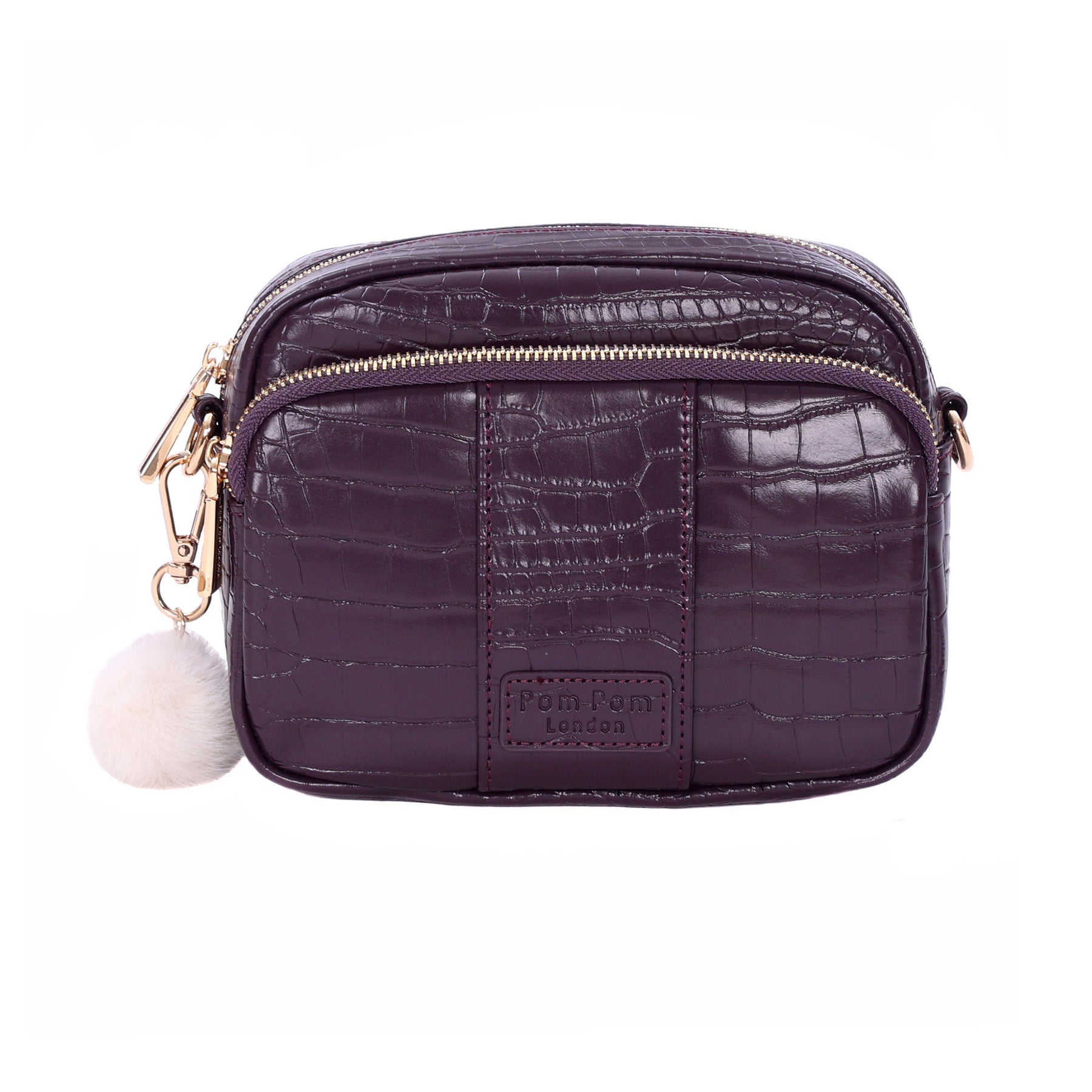 - Pom Pom London Original Bag Croc in Violet Fig - A premium crossbody in textured croc-embossed leather.