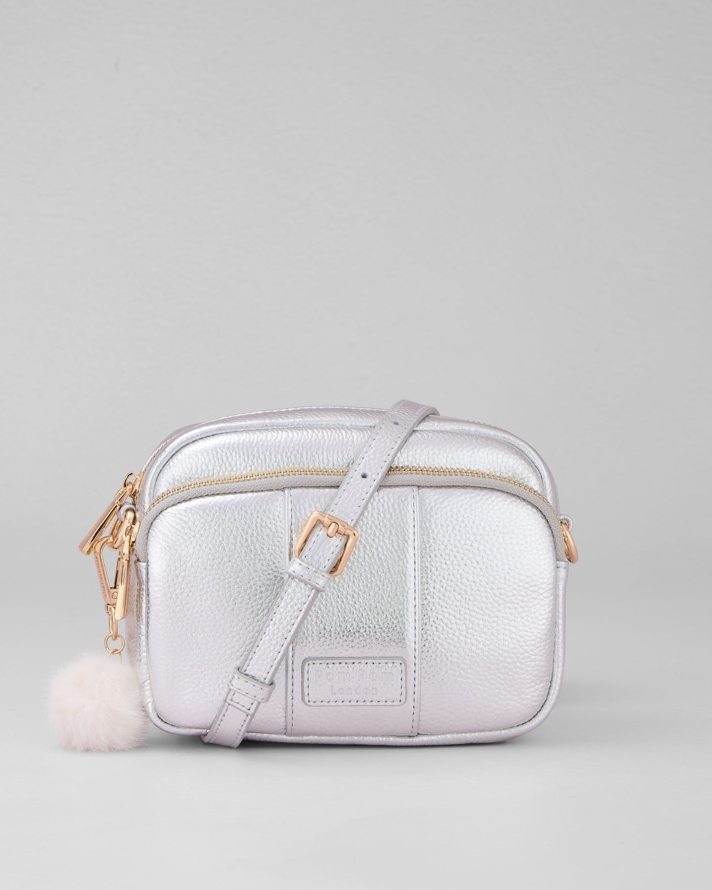 - Pom Pom London Original Bag in Metallic Silver - A statement crossbody that shines from day to night.