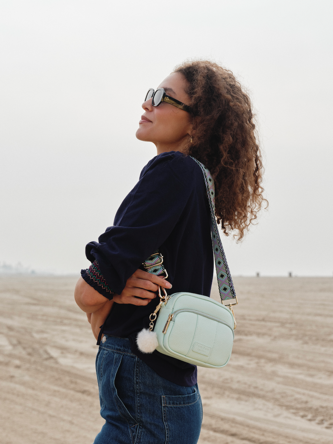 - Pom Pom London Original Mini Bag in Spearmint - A stylish crossbody bag in a vibrant new season shade.