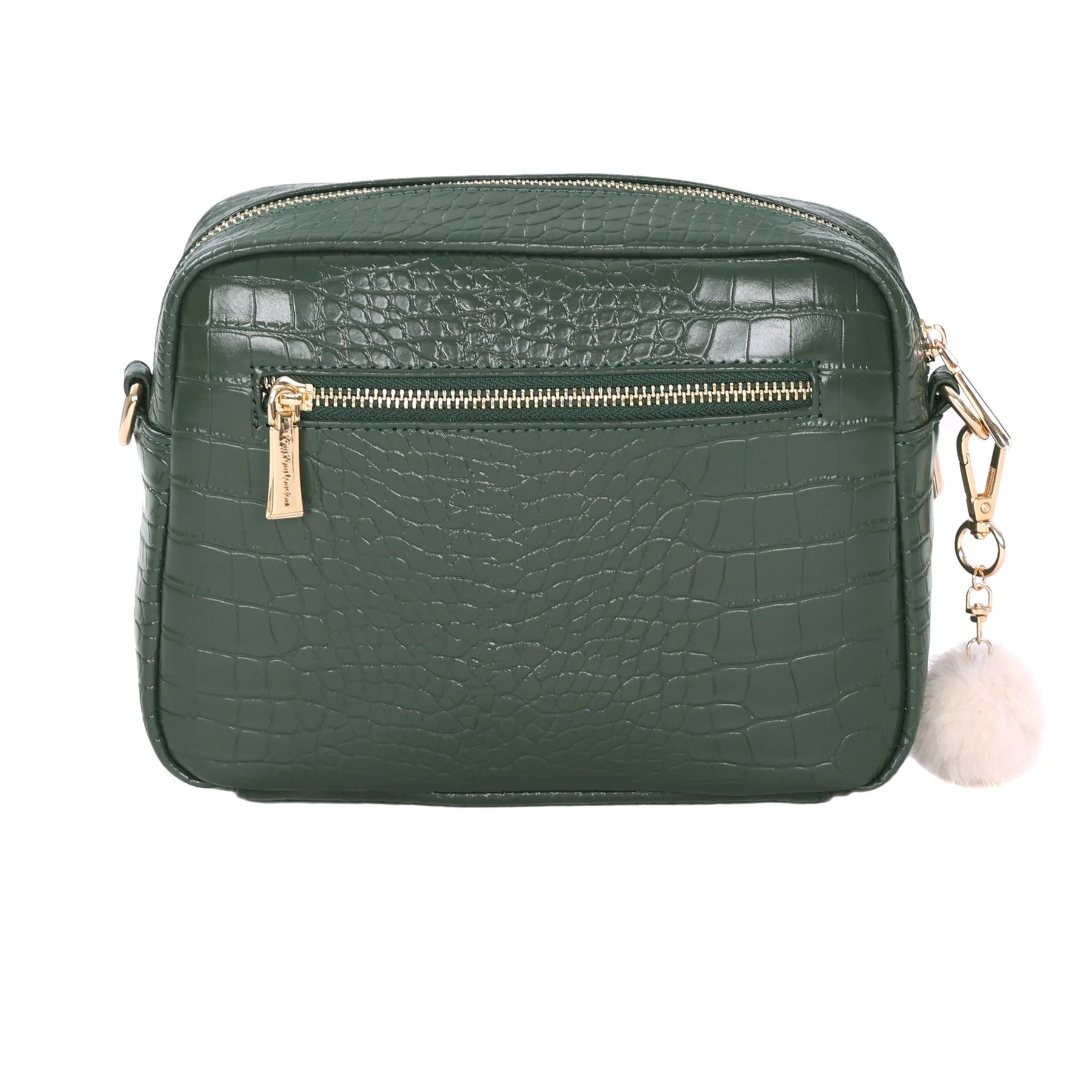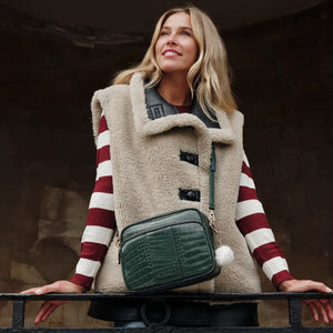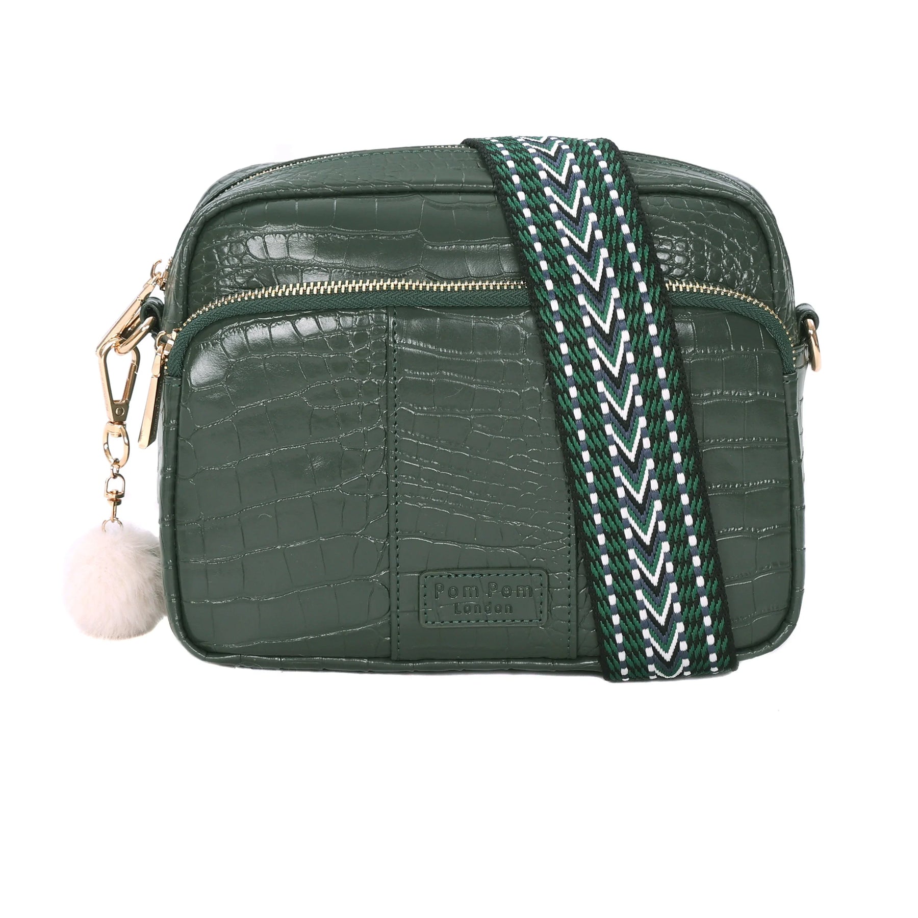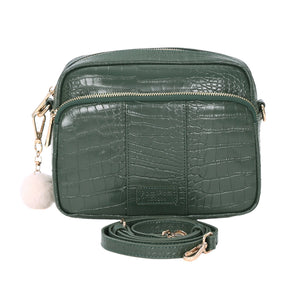 - Pom Pom London Original Plus Bag Croc in Pine Green - A premium crossbody in textured croc-embossed leather.