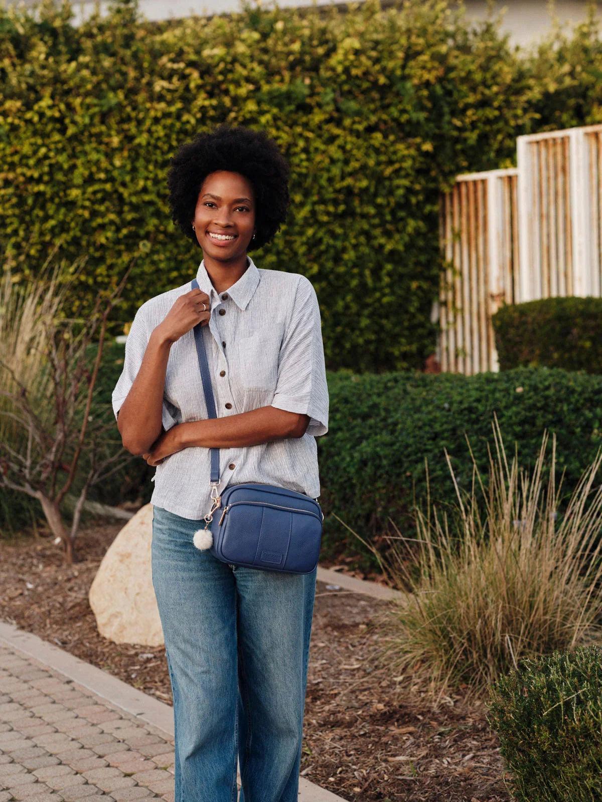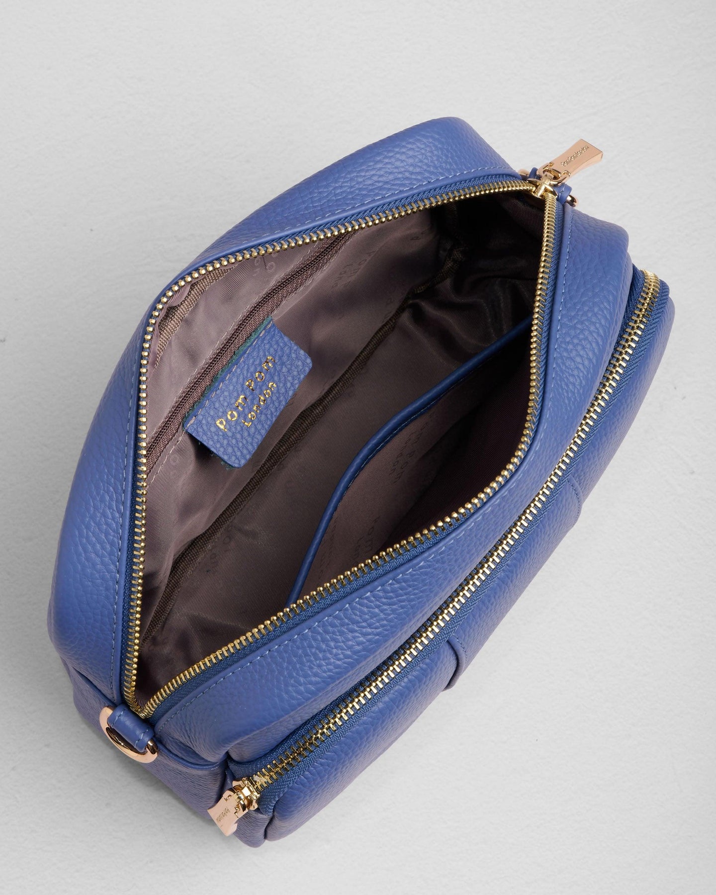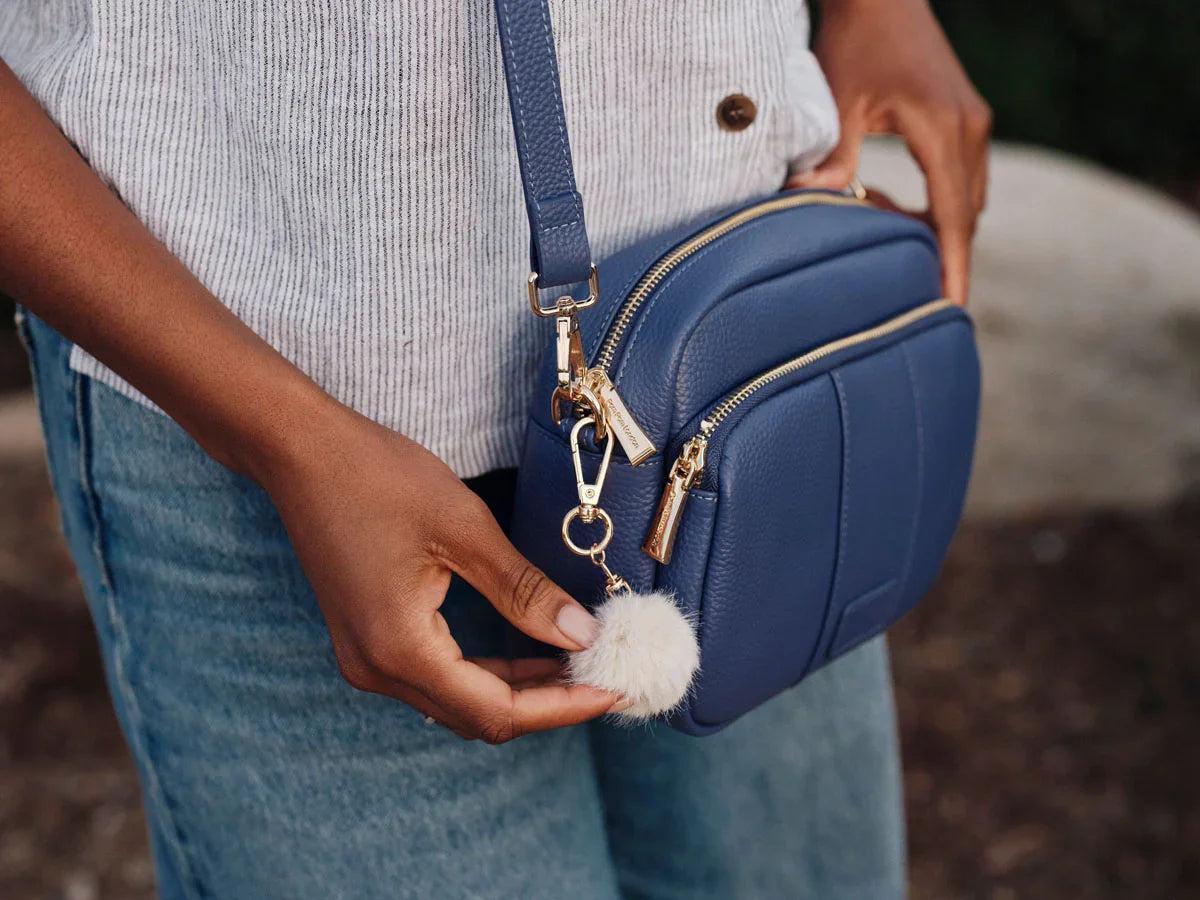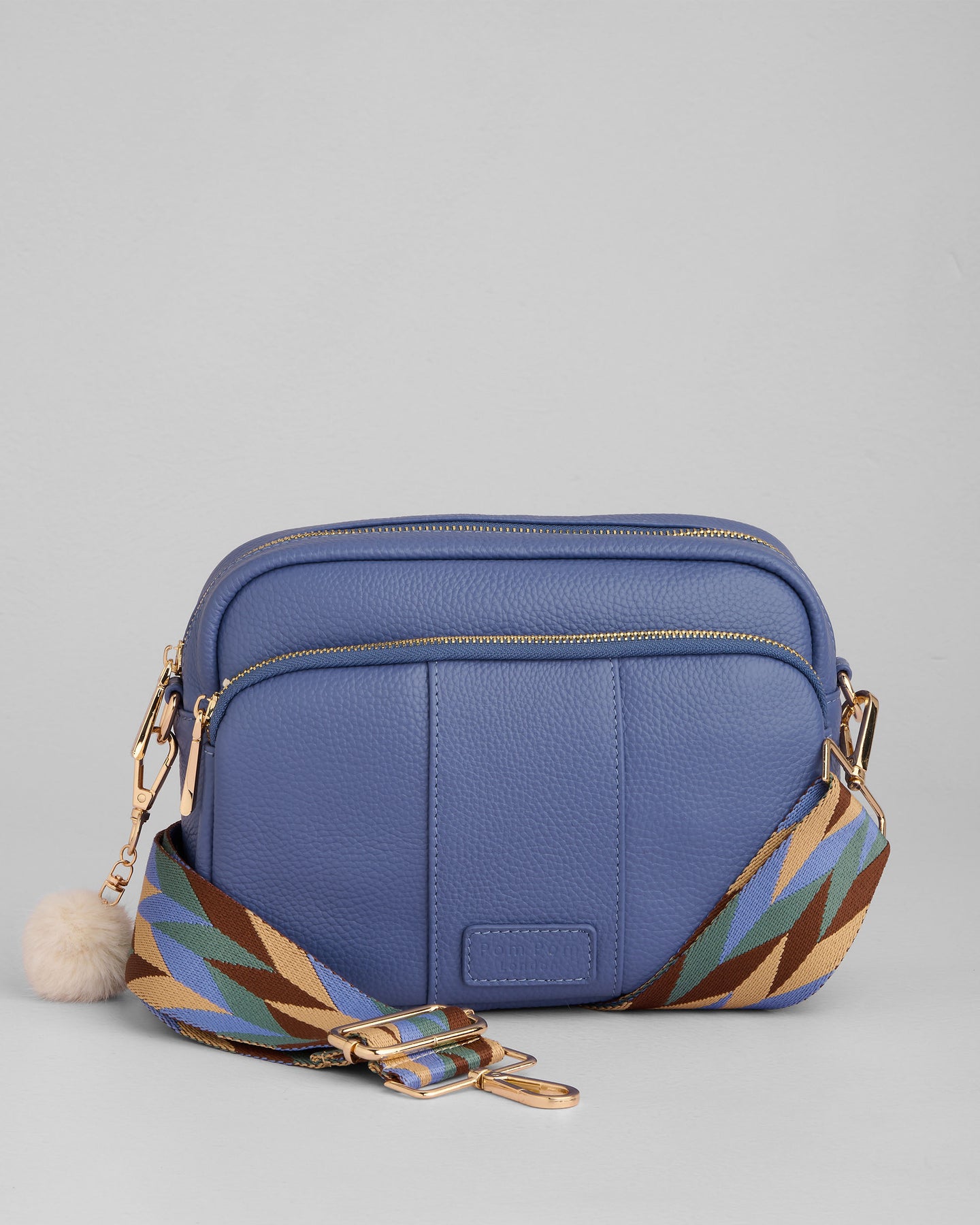 - Pom Pom London Original Plus Bag in Lupin Blue - A stylish crossbody bag in a vibrant new season shade.